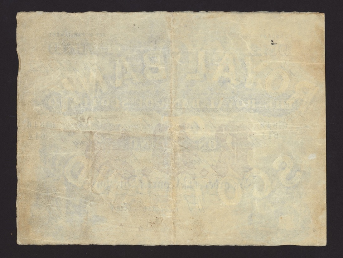 signed: D.S. Lunan, manuscript signature of Moir. Blue and red. Portrait flanked by unicorn and lion upper centre, Britannia lower left, Commerce lower right,