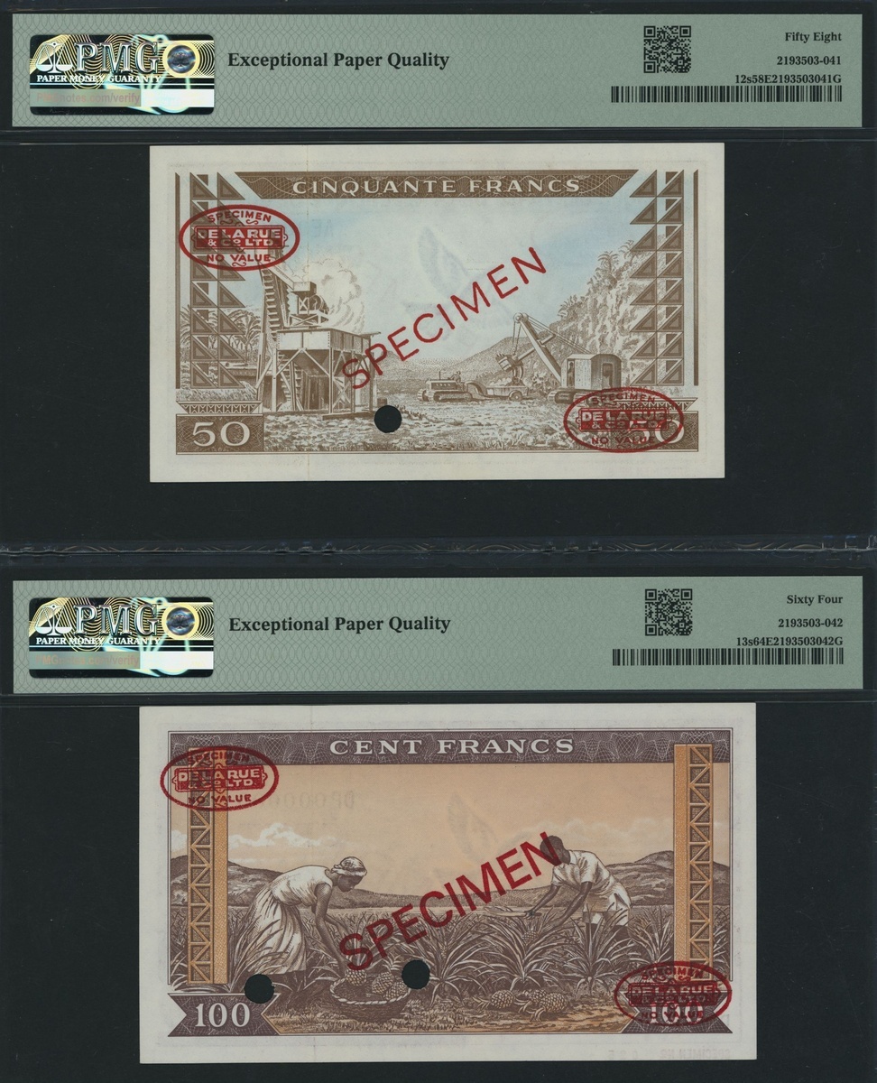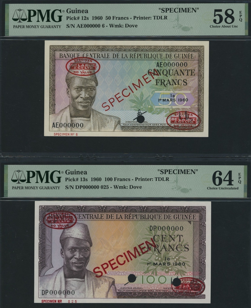 Banque Centrale de la Republique de Guinee, [2 notes] specimen 50, 100 Francs, 1960,