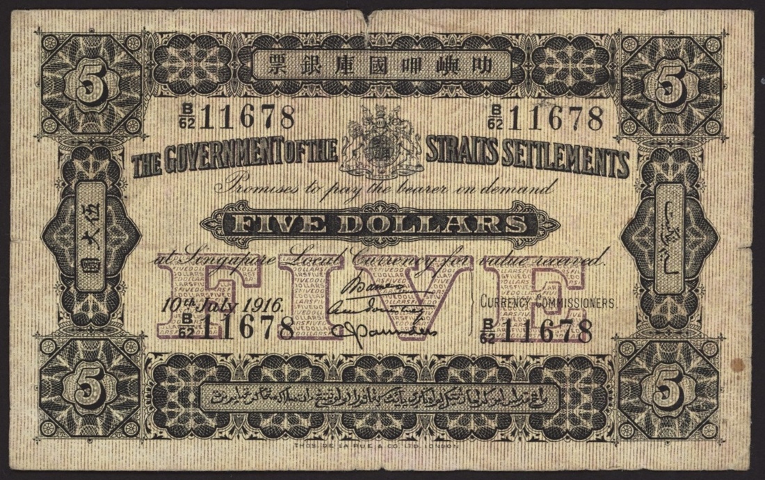 The Government of the Straits Settlements, 1 Dollar, 10th July 1916, serial number C/78 34216, (Pick 1c, BNB 103), very good