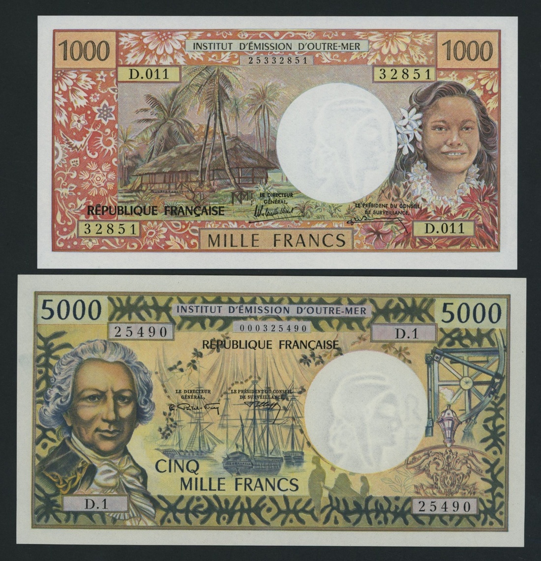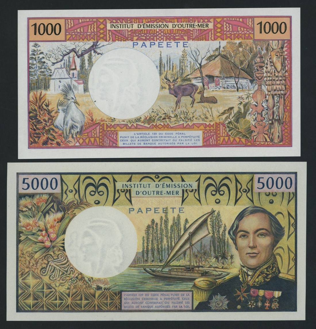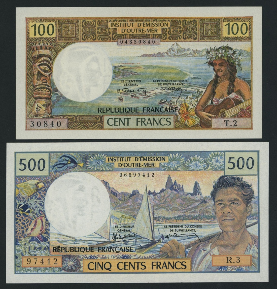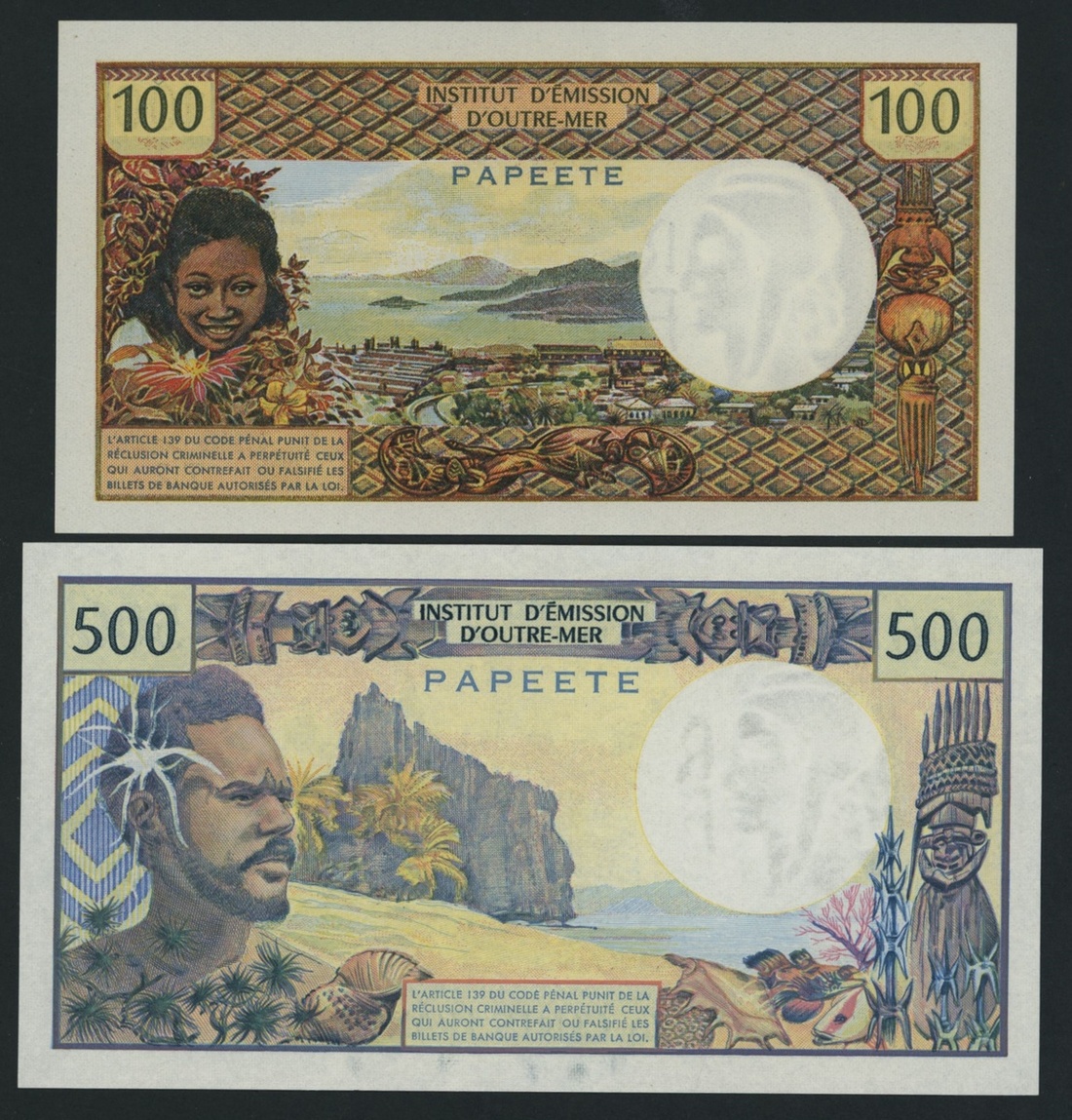 Institut d'Emission d'Outre-Mer, Tahiti, [4 notes] 100, 500, 1000, 5000 Francs, 1971-85,