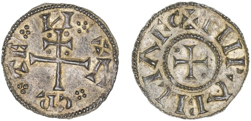 Viking Kingdoms, Cnut of Northumbria (c. 895-920), 'Mirabilia Fecit' Penny, Jórvík [York], +< •:• CR •: TE •:• N •:• patriarchal cross, single pellet in each angle of limb, rev. + MIRABILIA FC, small cross pattée, pellet in first and fourth quarter, 1.37g [21.14grns], 8h (SCBI 2 [Glasgow] 497 [same obverse die]; North 511; S.998), bold strike with pleasing toning, good extremely fine