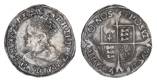 Mary and Philip (1554-1558), Groat, Tower, crowned and draped bust left, rev. square-topped shield over long cross fourchée, 1.96g [30.25grns], 9h (North 1973; S.2508), slight crimp to flan with scoring to reverse, otherwise uniform for strike with pleasing toning, very fine