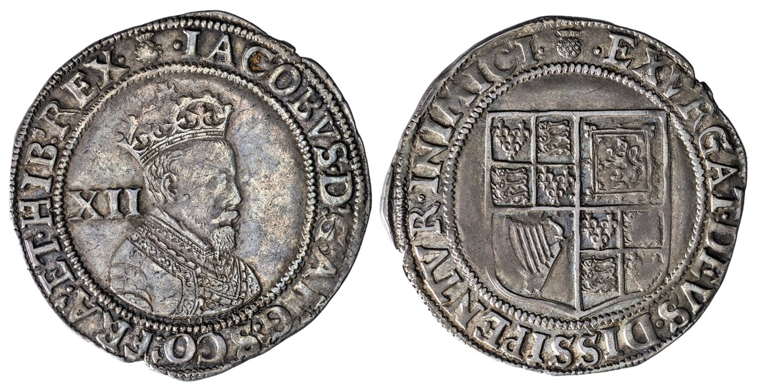 James I (1603-1625), First Coinage, Shillings, 21 May 1603 - 22 May 1604, Tower (2), (m.m.) • IACOBVS • D .' G .' ANG .' SCO .' FRA .' ET • HIB .' REX • first crowned and armoured bust right, XII behind, rev. (m.m.) • EXVRGAT • DEVS • DISSIPENTVR • INIMICI • square-topped shield, plain harp, 6.05g [93.37grns], 9h, m.m. thistle (North 2072; S.2645); another, second bust right, 6.14g [94.75grns], 7h, m.m. thistle (North 2073; S.2646), a couple of flan splits, and areas of softness, otherwise lightly toned, very fine; an excellent portrait pairing! (2)