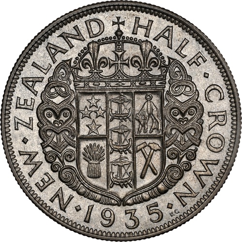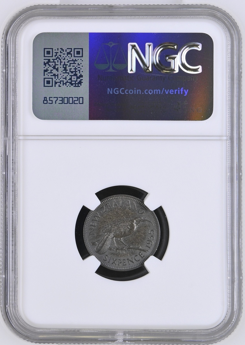 NGC PF62-PF64 | New Zealand, George V (1910-1935), 'Waitangi' Proof Set (6), 1935, NGC PF64 | Crown, crowned and draped bust left, rev. Maori Chief Tamati Waka Nene and British Captain William Hobson shaking hands, crown above, WAITANGI in exergue, edge milled, 28.21g, 12h; NGC PF64 | Halfcrown, as before rev. crowned shield, Maori ornamentation around, edge milled, 14.11g, 12h; NGC PF63 | Florin, as before, rev. kiwi bird left, edge milled, 11.25g, 12h; NGC PF63 | Shilling, as before, rev. Maori warrior, edge milled, 5.61g, 12h; NGC PF63 | Sixpence, as before, rev. huia on branch, edge milled, 2.82g, 12h; NGC PF62 | Threepence, as before, rev. two carved patu, edge plain, 1.40g, 12h (KM 1-6) some cabinet friction to the highest points of the faces, otherwise with a uniform dark silver-blue tone overlaying brilliant fields, much as struck, in original Royal Mint case of issue, one of only 364 sets struck, thus rare, in NGC holders graded PF62 to PF64 (Cert.#8222307-001/002/003/004/005/006) (6)