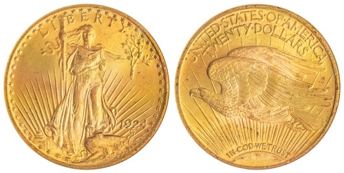 (x) NGC MS64 | USA, 'St Gaudens' Double Eagle of Twenty-Dollars, 1924 $20, Philadelphia, Liberty standing rev. "IN GOD WE TRUST" under eagle, edge lettered, 6h (KM 131), lightly contact marked, with a pleasing mint lustre, extremely fine, in NGC holder, graded MS64 (Cert. #608614-003)