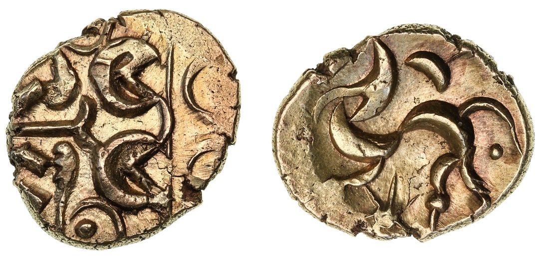 Iron Age Britain, Corieltauvi, Uninscribed Issues (45-10 BC), 'South Ferriby' Type, AV Stater, debased head of Apollo right, rev. disjointed horse left, star before, 5.47g [84.41grns], 1h (VA 811-1; ABC 1743; S.390), boldly struck with some minor flan splits, some slight softness about the edges but otherwise very fine