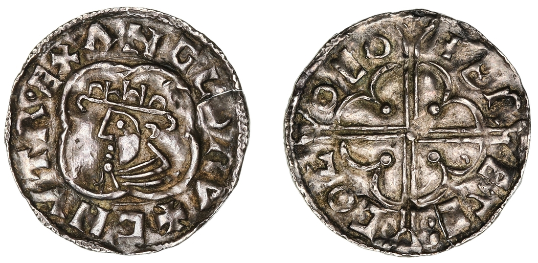 Cnut 'the Great' (1016-1035/36), 'Quatrefoil' Type, Penny, 1016/17-1022/23, York, Bretakollr, + CNVT R.EX ANGLORV, crowned and draped bust left, in quatrefoil, rev. + BRETECOL O EO, voided long cross over pellet-tipped quadrilobe, 1.06g [16.36grns], 4h (SCBI 29 [Merseyside], 602-603; SCBI 36 [Berlin], 670; SCBI 37 [Poland], 210; SCBI 51 [Estonia], 642; SCBI 66 [Norway, Part II], 2463-2464; North 781; S.1157), slightly wavy flan, small flan split and daylight crack, a touch of softness but otherwise very fine