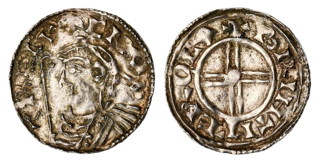 Cnut 'the Great' (1016-1035), 'Short Cross' Type, Penny, 1029-1035, London, Beorhtmær, + CNV TRECX, diademed bust left with four horizontal folds and five vertical pellets to drapery; fleur de lys-tipped sceptre before, double-tie behind neck, rev. + BRIHTMÆR O LV, voided short cross with large pellet in centre within inner circle, 0.92g [14.20grns], 11h (SCBI 14 [Copenhagen, Part IIIB], 2191; SCBI 21 [Yorkshire], 1718; SCBI 37 [Poland], 273; SCBI 51 [Estonia], 853; SCBI 66 [Norway, Part II], 3460; EMC 2011.0249 same dies; North 790; BMC XVI; S.1159), worn dies, otherwise a full flan, lightly toned, very fine