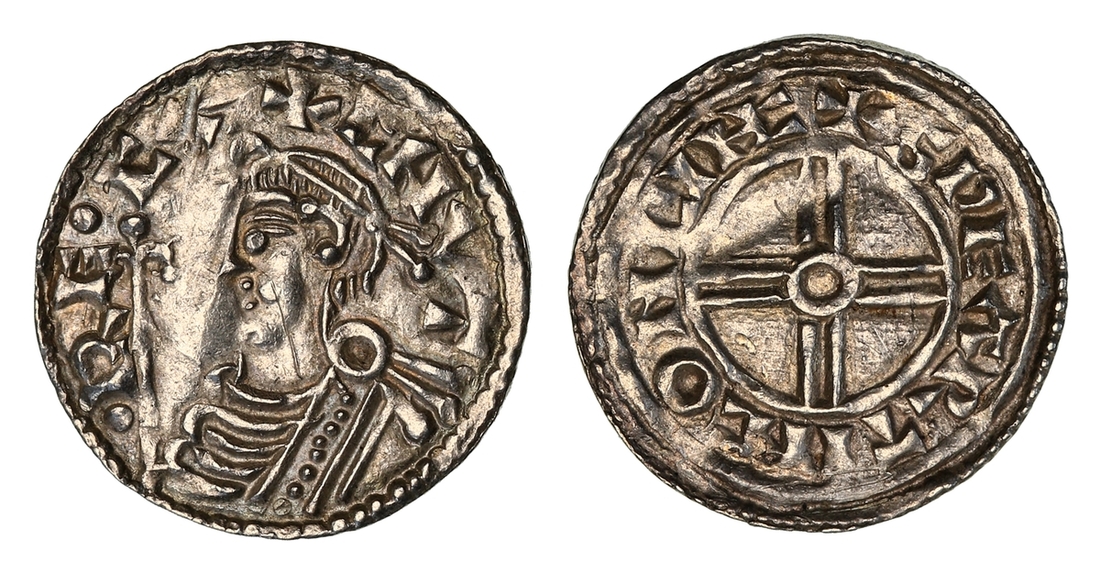 Cnut 'the Great' (1016-1035), 'Short Cross' Type, Penny, 1029-1035, Lincoln, Svertingr, + CNVT .RE:CX, diademed bust left with five horizontal folds and nine vertical pellets to drapery; fleur de lys-tipped sceptre before, double-tie behind neck, rev. + SPEARTING ON LINC, voided short cross with large pellet in centre within inner circle, 1.18g [18.21grns], 4h (SCBI 17 [Midland], 342; SCBI 25 [Helsinki], 861; SCBI 27 [Lincolnshire], 509-517; SCBI 37 [Poland], 270; SCBI 51 [Estonia], 839-841; EMC 1991.0136; 2001.0700; North 790; BMC XVI; S.1159), ever so slightly warped, small scuffs, lightly toned, very fine