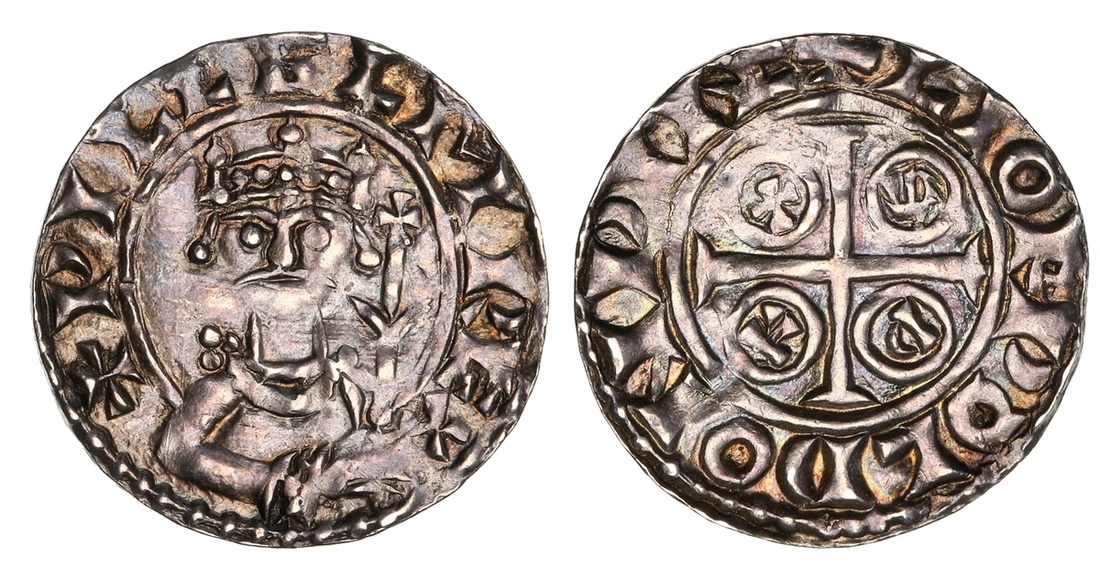 William 'the Conqueror' (1066-1087), 'PAXS' Penny, 1083-1086, Winchester, Leofweald, + PILLELM REX, crowned bust facing, with flat band and arches, cross-tipped and winged sceptre in right field, trefoil above left shoulder, rev. + LIOFPOLD ON PINC, short cross potent, P A X S in angles commencing in fourth quarter, 1.36g [20.99grns], 9h (SCBI 11 [Reading], 637-641; SCBI 12 [Ashmolean, Part II], 165-166; SCBI 17 [Midlands], 619-620; SCBI 18 [Copenhagen, Part IV], 1364-1367; SCBI 20 [Mack], 1465; SCBI 21 [Yorkshire], 1235-1237, 1757; SCBI 24 [West Country], 831-836, 1000; SCBI 26 [East Anglia], 1403; SCBI 30 [America], 728-730; SCBI 36 [Berlin], 902, 906; SCBI 42 [South Eastern], 1871; SCBI 48 [Northern], 1123-1127; SCBI 51 [Estonia], 1110-1111; EMC 1300.0085, 1300.0140, 1300.0144, 1300.0180; North 848 [Crown 1]; BMC VIII; S.1257), occasional softness, more so to the reverse, otherwise toned with golden hues in the recesses, near very fine