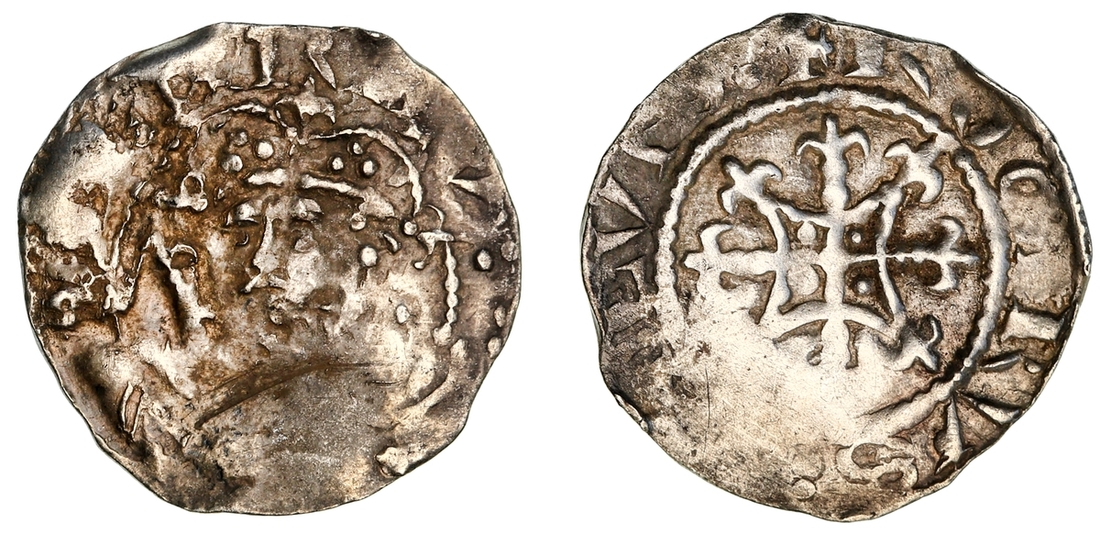 Henry I 'Beauclerc' (1100-1135), 'Quadrilateral on Cross Fleury' Type, Penny, c. 1125-1135, London, Rodger, crowned and draped bust three-quarters facing left, rev. + ROGERVS : ON : LVND, voided quadrilateral atop cross fleury, 1.38g [21.30grns], 12h (SCBI 27 [Lincolnshire], 1790; SCBI 68 [Lyon], 1042; EMC 1987.0192; 1988.0220; 1994.0251; 2012.0077; 2017.0315; North 871; BMC XV; S.1276), slightly irregular flan, areas where details are blundered, remaining features bolder, fine to very fine