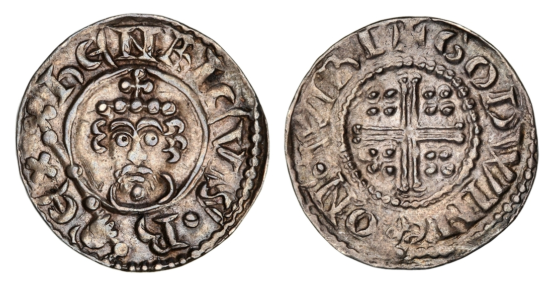 Henry II (1154-1189), 'Shortcross' Penny, 1180-1182, Class 1b, Worcester, Godwine, hENRICVS • R | EX, crowned bust facing holding sceptre, rev. GODWINE ON WIRI, short voided cross, quatrefoils in angles, 1.45g [22.38grns], 5h (North 963; S.1344), completed, deeply and evenly toned, very fine, scarce