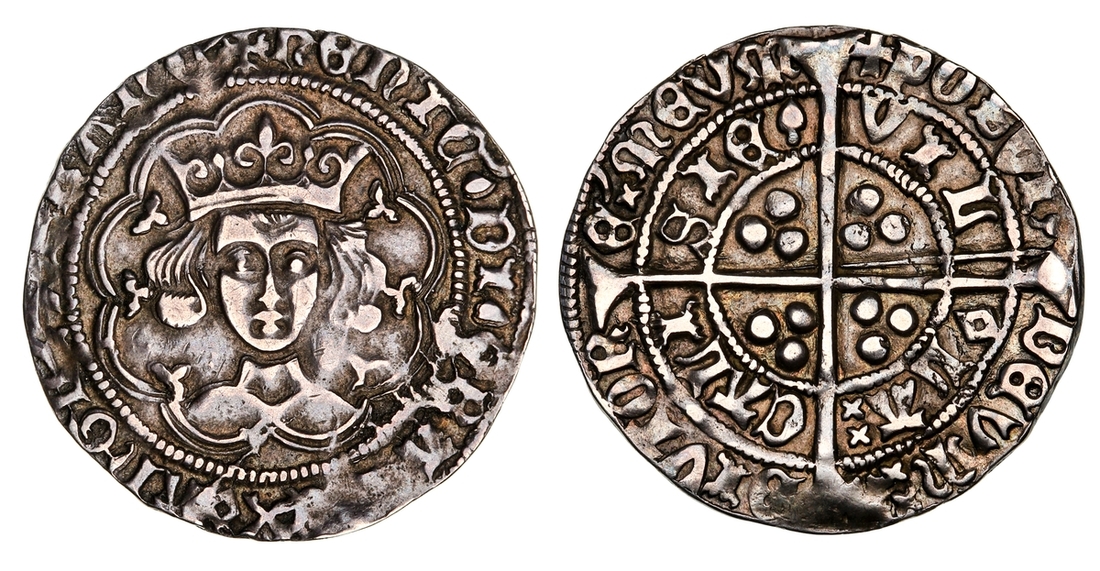 Henry VI, First Reign (1422-1461), Pinecone-Mascle Issue, Groat, Calais, +hEnIC . DI . GRA . REX . ANGL Z FRANC crowned facing bust, rev. VILLA CALISIE, long cross and trio of pellets in angles, m.m. cross patonce, 3.69g [56.95grns], 1h (North 1461; S.1875), slightly clipped, an unlisted error, rare, toned, very fine