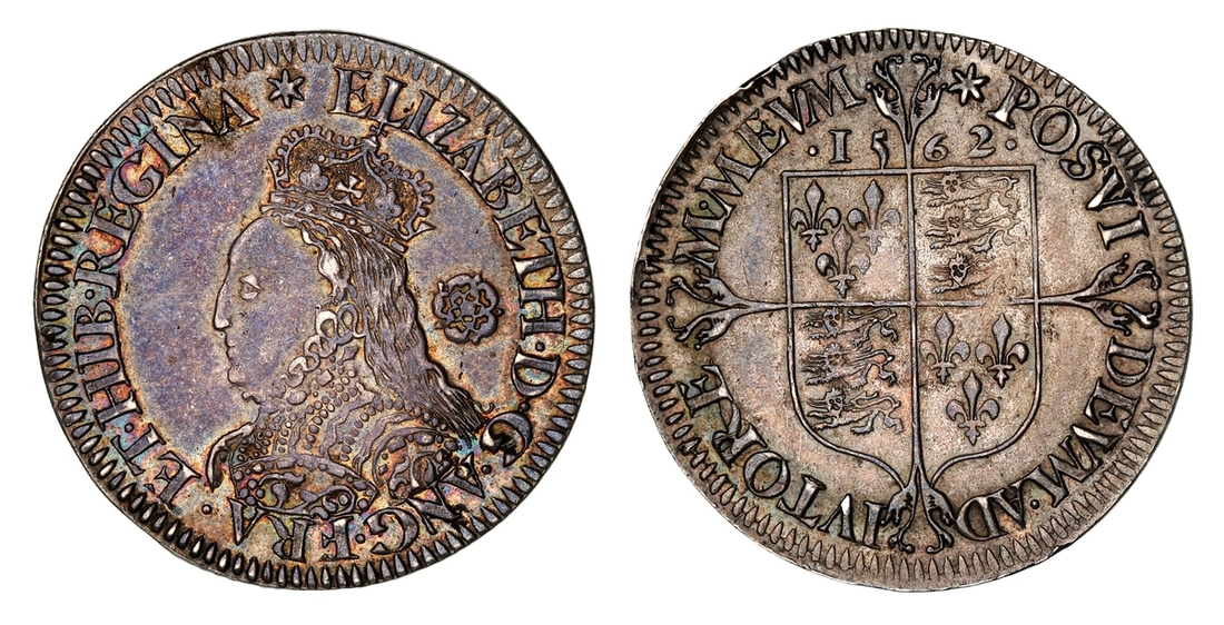 Elizabeth I (1558-1603), Mestrelle's Milled Issues, Sixpence, 1562, Tower [Upper House], (m.m.) ELIZABETH • D • G • ANG • FRA • ET • HIB • REGINA, broader crowned bust left, with ornately decorated bodice, small rose behind, rev. (m.m.) POSVI DEVM • ADIVTOREM • MEVM, square-topped shield over long cross fourchée, • 1562 • above shield, 3.11g [47.99grns], 6h, m.m. star (North 2027; S.2596), some light hairlines, otherwise with a pleasing cabinet tone and lustrous, extremely fine