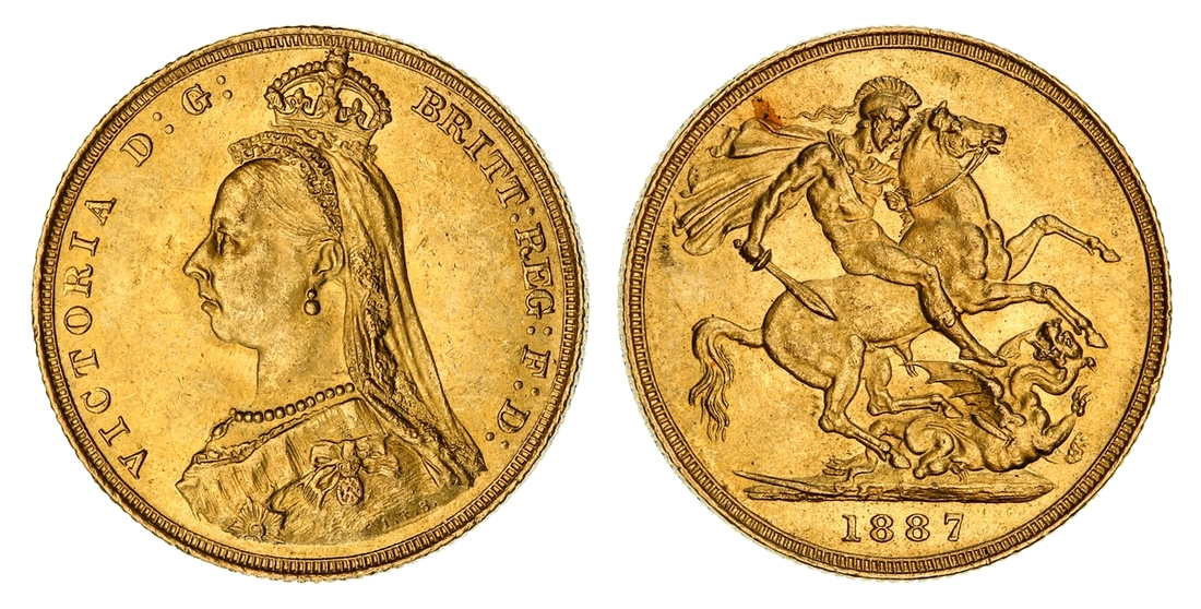 (g) NGC MS62 | Victoria (1837-1901), 'Golden Jubilee' Sovereign, 1887, Jubilee bust left, normal J.E.B. on truncation, rev. St George and Dragon, edge milled, 7.997g, 12h (MCE 547; DISH L7; Marsh 125D; S.3866), faint bagmarks in otherwise fully lustrous and mint frosted fields, much as issued, in NGC holder, graded MS62 (Cert. #8534334-005)