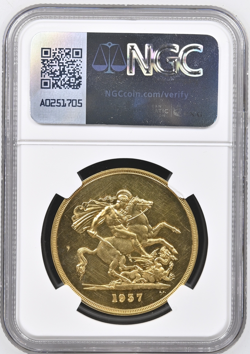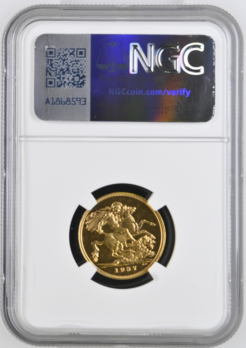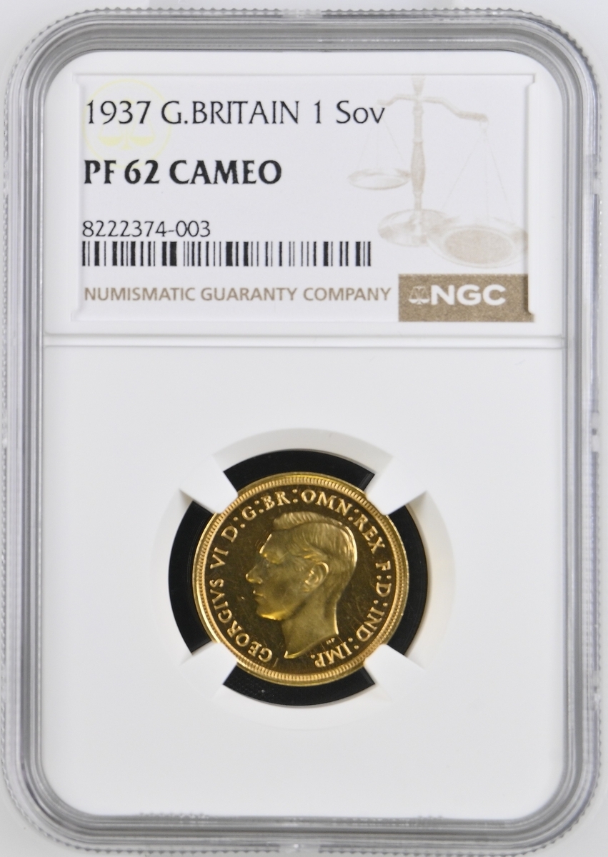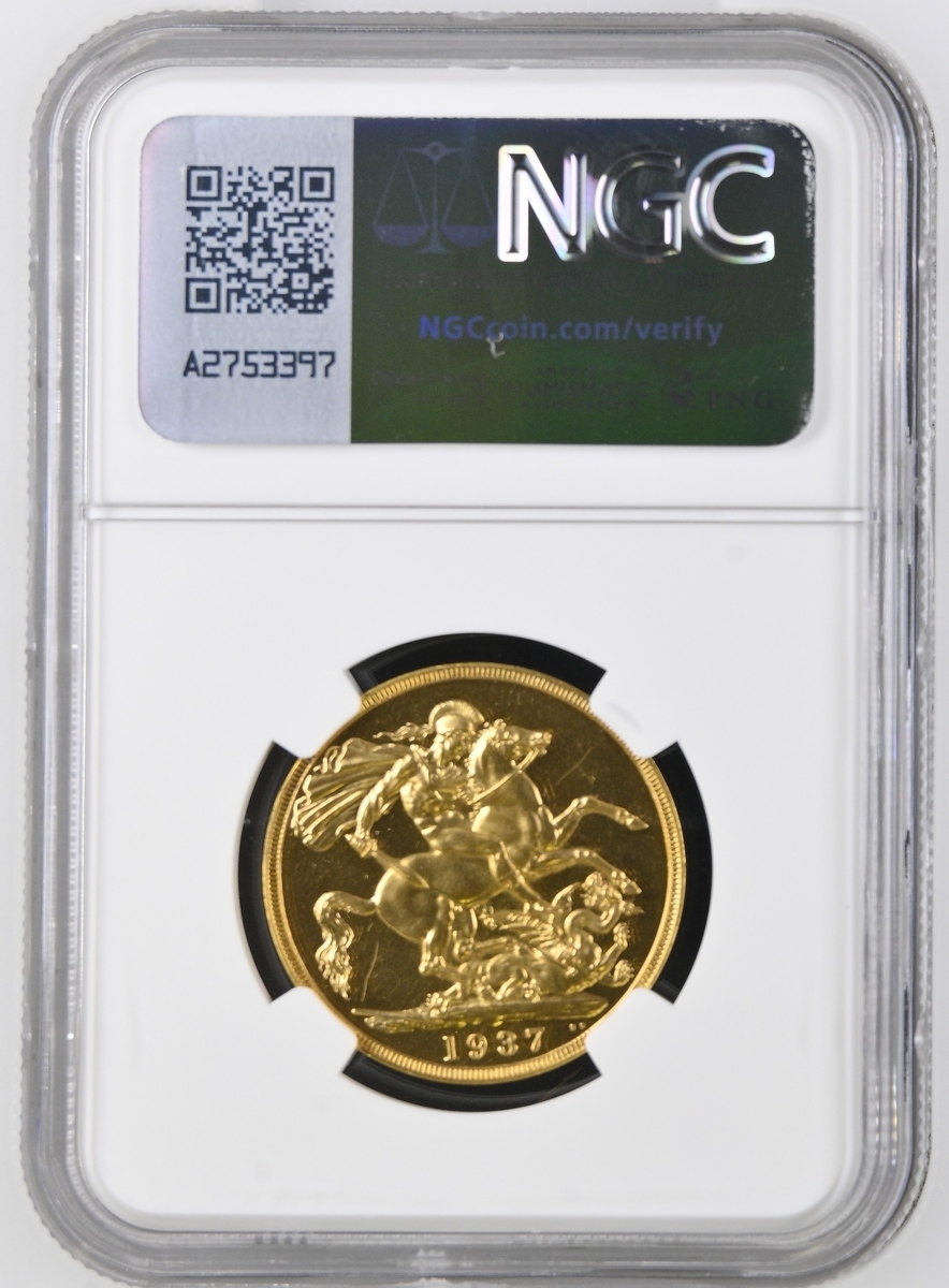(g) NGC PF62 CAM-PF64 | George VI (1936-1952), Coronation 'Specimen' Gold Proof Set, 1937 (4), Five-Pounds to Half-Sovereign, bare head left, rev. St George and Dragon, edges plain (S.PS15 = W&R 435, 437, 439, 442; S.4074-4077),, in NGC holders, 5SOV graded PF62 CAMEO, 2SOV graded PF63, SOV graded PF62 CAMEO, 1/2SOV graded PF64 (Cert. #8222374-001/002/003/004) (4)