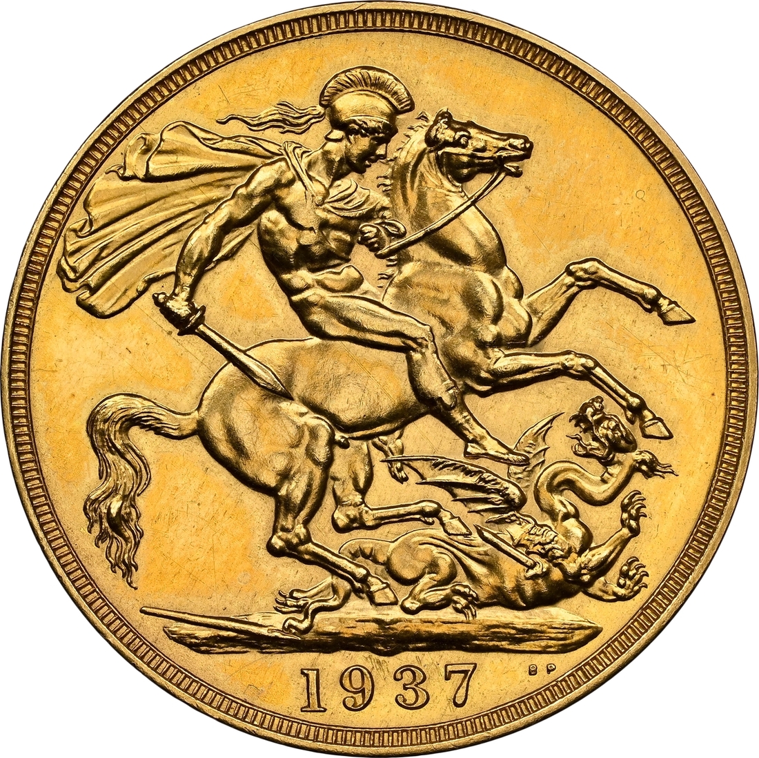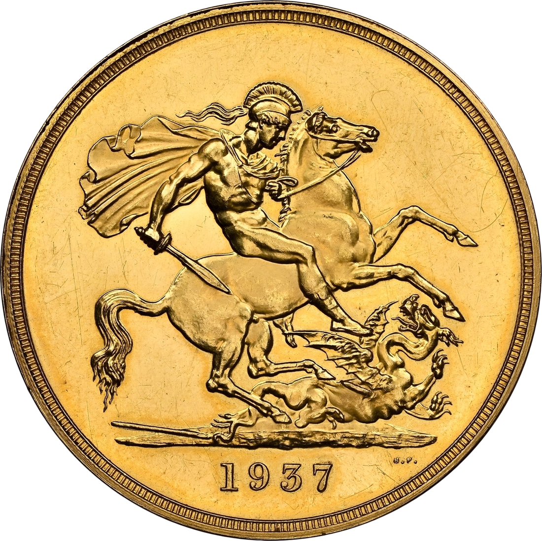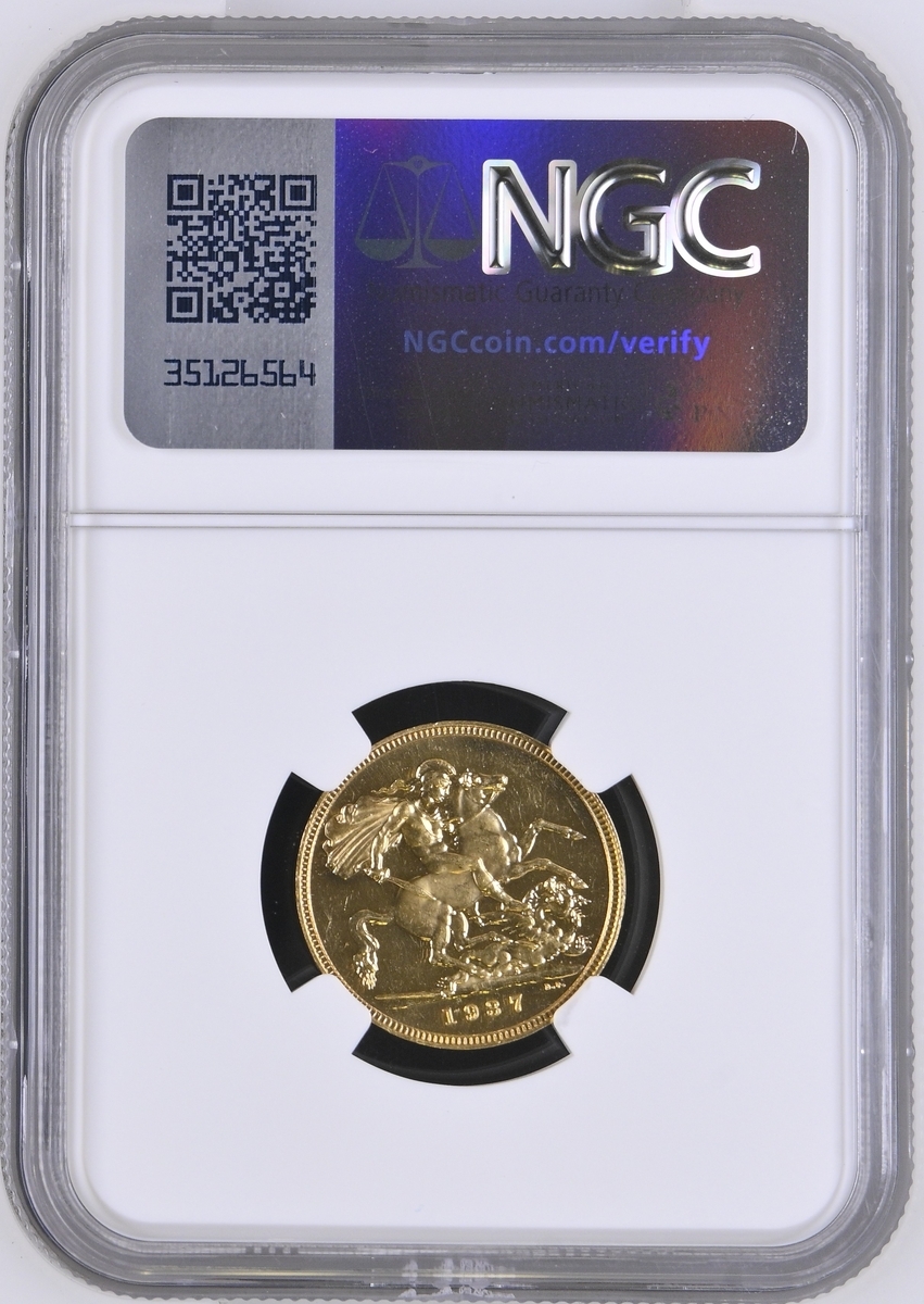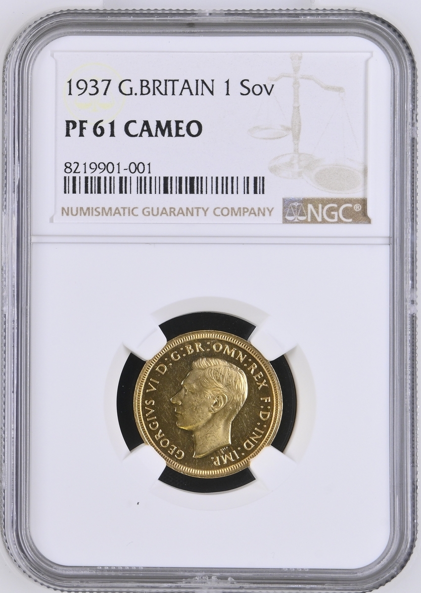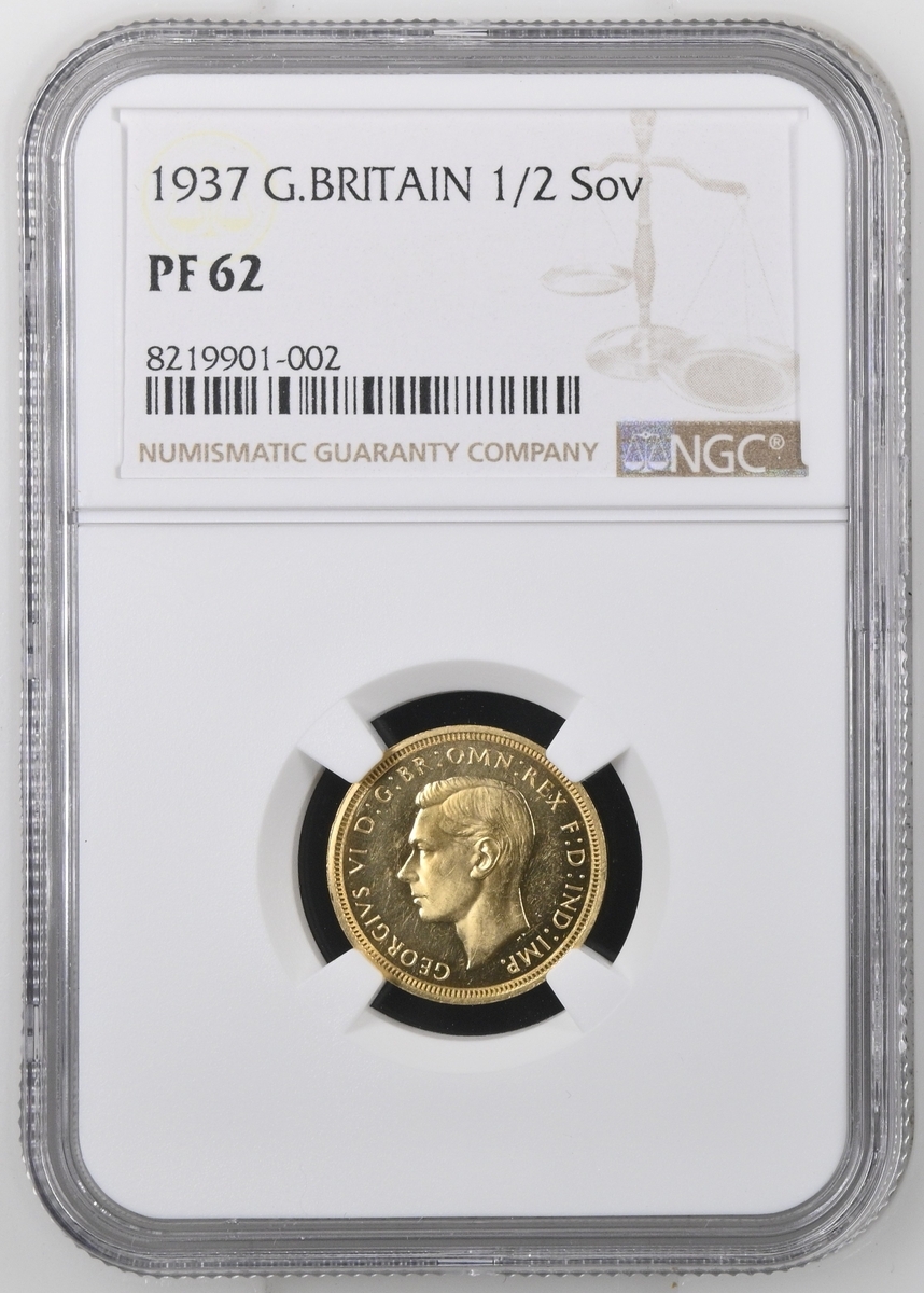 (g) NGC PF62-PF | George VI (1936-1952), Coronation 'Specimen' Gold Proof Set, 1937 (4), Five-Pounds to Half-Sovereign, bare head left, rev. St George and Dragon, edges plain (S.PS15 = W&R 435, 437, 439, 442; S.4074-4077), the Five Pounds scratched but otherwise all brilliant, as struck, in NGC holders, graded PF62-PF [5SOV=Proof Details ~ Rev Scratched; 2SOV=PF62; SOV=PF61 CAMEO; 1/2SOV=PF62] (Cert. #8219900-001/002, 8219901-001/002) (4)