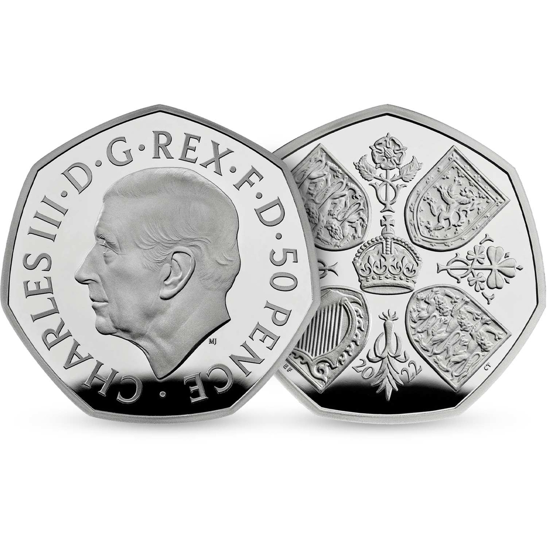 Charles III (2022-Present), Platinum Proof Fifty Pence, 2022, Celebrating the Life of Queen Elizabeth II, King's head left, rev. four sheilds about crown, edge plain, 19.10g*, 12h, brilliant, as struck, comes in Royal Mint box