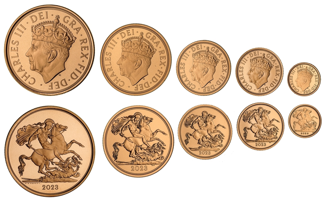 (g) Charles III (2022-Present), "Royal Mint Silent Auction" Coronation Specimen Matte Proof Five-Coin Set, 2023, Llantrisant (5), Proof Five-Pounds to Quarter Sovereign, crowned bust left, rev. St George and Dragon, 12h, a true Modern Day Numismatic Rarity, with only 25 Produced, and just 23 actually released to Private Collectors, this 'Snake Eyes' No. 11 Set, never certified and exactly as issued by the Royal Mint on 17 March 2024, choice as struck, with a specialist sandblasted finish, a wonderful opportunity to acquire what is destined to become amongst the rarest issue of His Majesty King Charles III's reign (Cert. 11 of 25) (5)