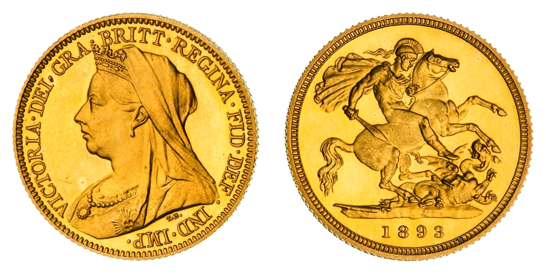 (g) NGC PF63+ UCAM | Victoria (1837-1901), 'Old Head' Proof Half-Sovereign, 1893, by Thomas Brock and Benedetto Pistrucci, old head left, rev. St George and Dragon, edge milled, 3.974g, 12h (W&R 363; Marsh 488A; EGC II, 1390; S.3878), light speckling and haziness, otherwise brilliant uncirculated, a delightful specimen, only 773 pieces struck, in NGC Black 'Pallas' holder graded PF63+ ULTRA CAMEO (Cert. #8534314-019)