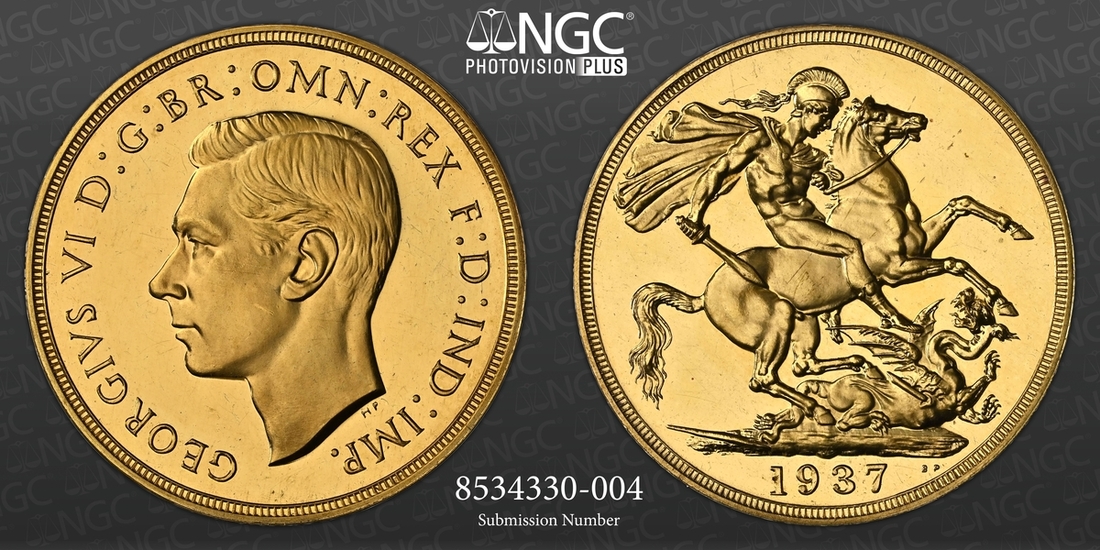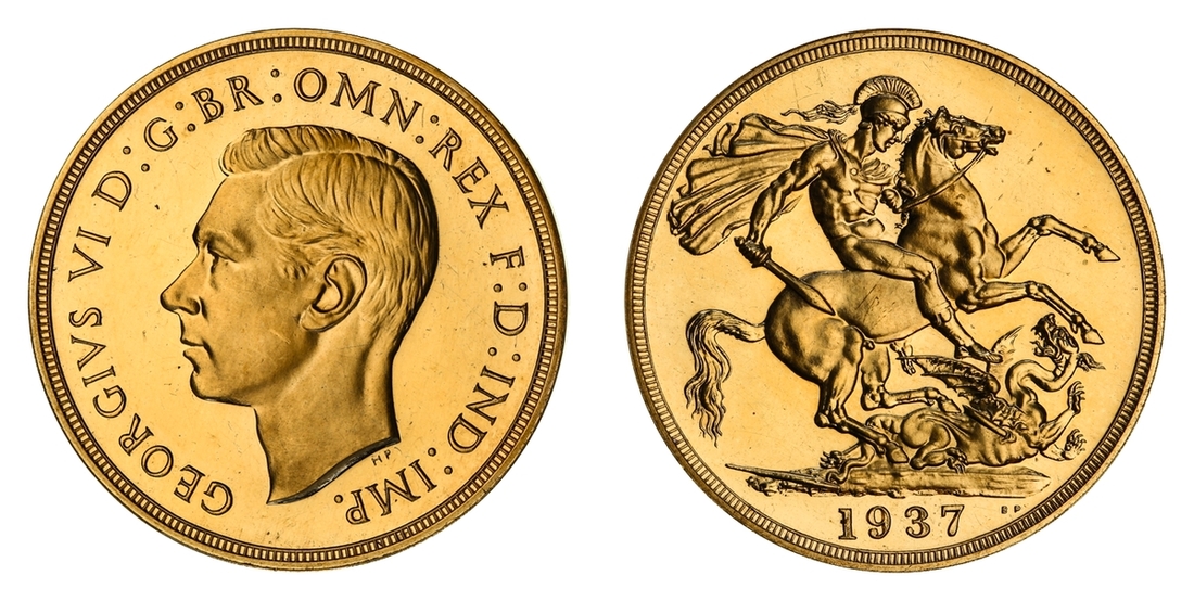 (g) NGC PF63+ UCAM | George VI (1936-1952), Coronation 'Specimen' Proof Two-Pounds, 1937, bare head left, rev. St. George and Dragon, edge plain, 15.98g*, 12h (W&R 437; Marsh T46; EGC II, 1455; S.4075), light speckling in otherwise brilliant fields, much as struck, the portrait distinctly cameo, in NGC Black 'Pallas' holder, graded PROOF 63 ULTRA CAMEO (Cert. #8534330-004)