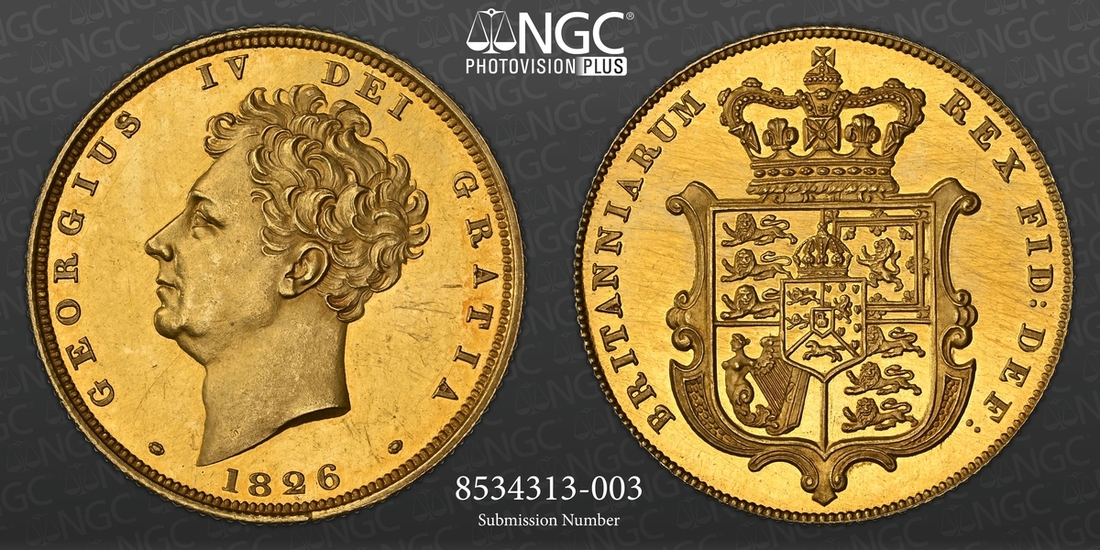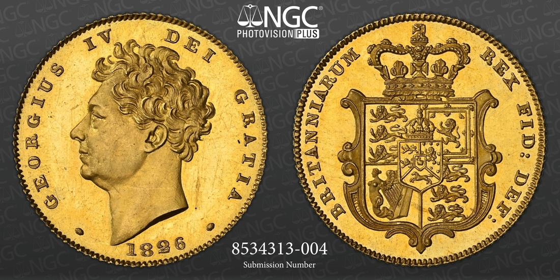 iv) PF65 UCAM | Proof Half-Sovereign, 1826, without 'extra tuft', edge milled, 3.985g, 6h (Douglas-Morris 153; Hill 407A; W&R 249; EGC II, 997), the deftest cabinet friction in otherwise brilliant fields, a beautifully honest and wholesome example of this treasured rarity, virtually as struck, in NGC 'Black' Pallas holder, graded PROOF 65 ULTRA CAMEO (Cert. #8534313-004)