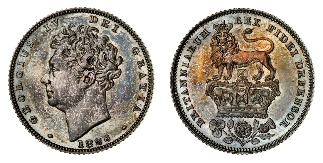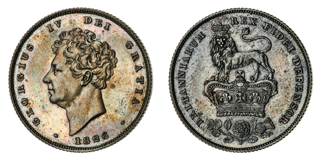 viii) PF63 | Proof Sixpence, 1826, "extra tuft", edge milled, 2.833g, 7h (Bull 2435; ESC 1663), spots of red wax in previously wiped but brilliant and darkly retoned fields, a pleasingly bold extremely fine, in NGC 'Black' Pallas holder, graded PROOF 63 (Cert. #8534313-008)