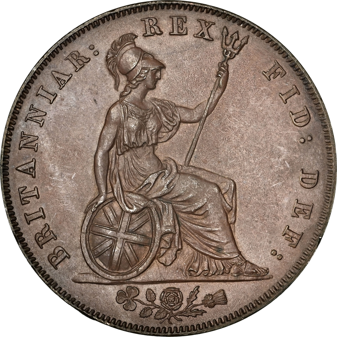 For collectors however the wait would be rather longer to legitimately obtain examples. The dispersals of Mr Ralph Willett (Sotheby's, 15 March 1827) and Royal Mint Engraver John Milton (Sotheby's, 23 April 1827) did not offer the new proofs, despite both gentlemen clearly having the means and the access to them. In fact it is not until the sale of the appropriately named Mr Rich (Sotheby's, 7 July 1828, lot 189), that a similarly designed 1825 Proof Halfcrown appears at public auction, with examples of the specimen copper specie following with the sale of the late Joseph Miller of Barnard's Inn, Holborn (Sotheby's, 25 February 1829, lot 180).
