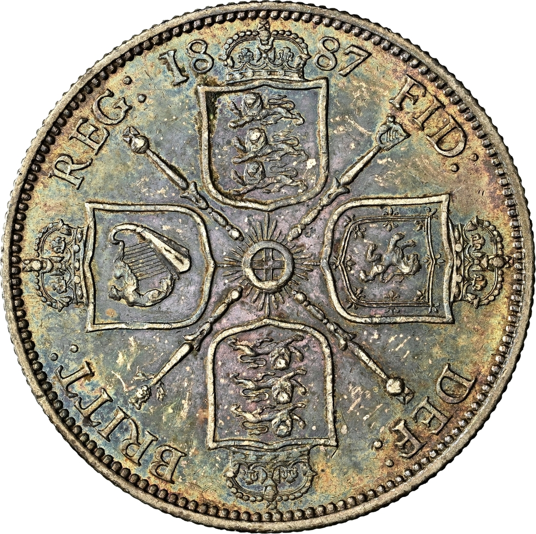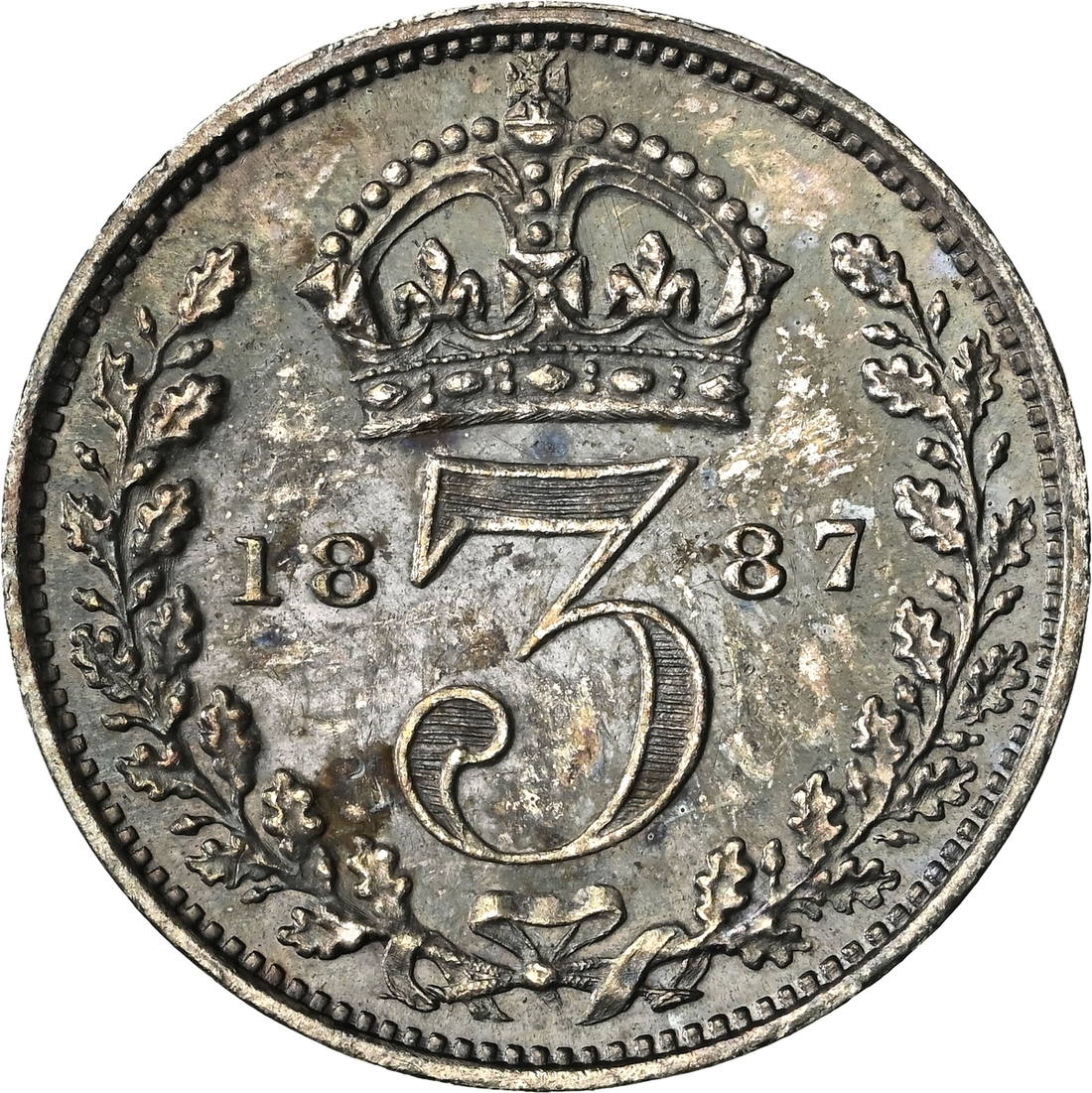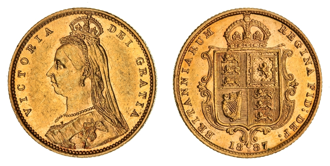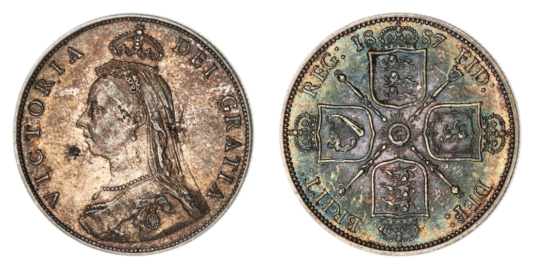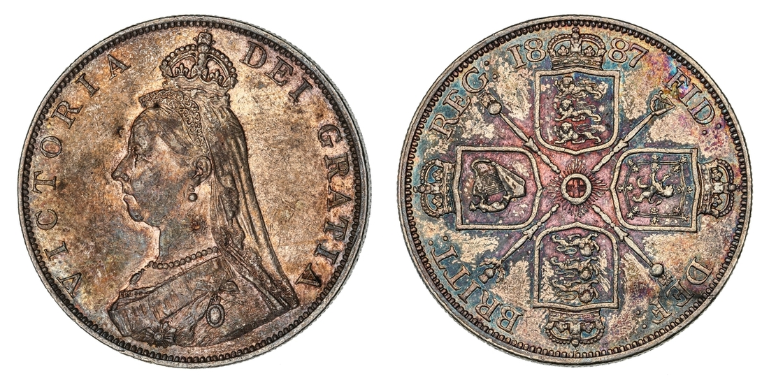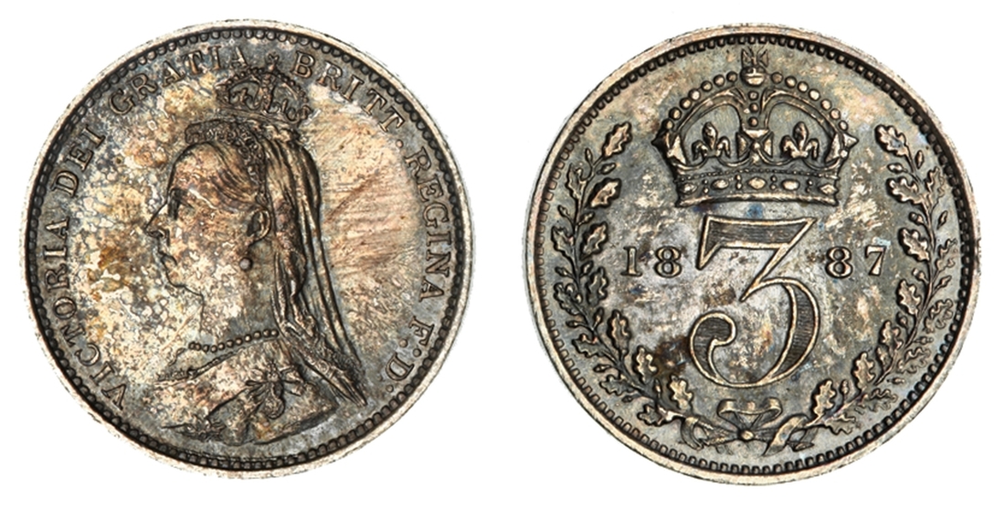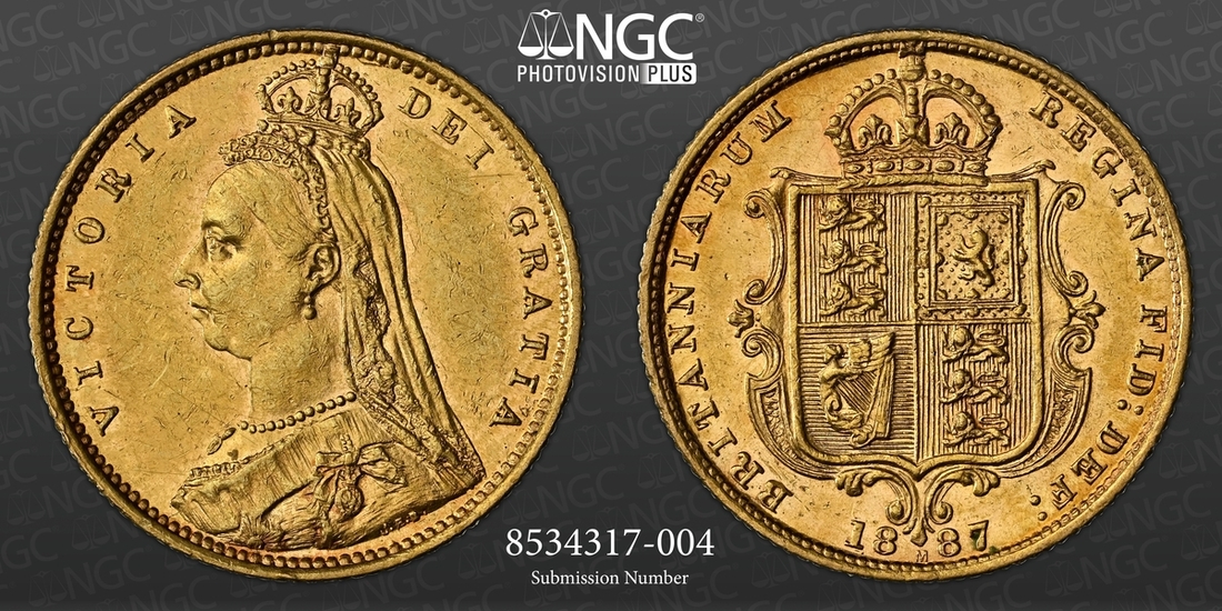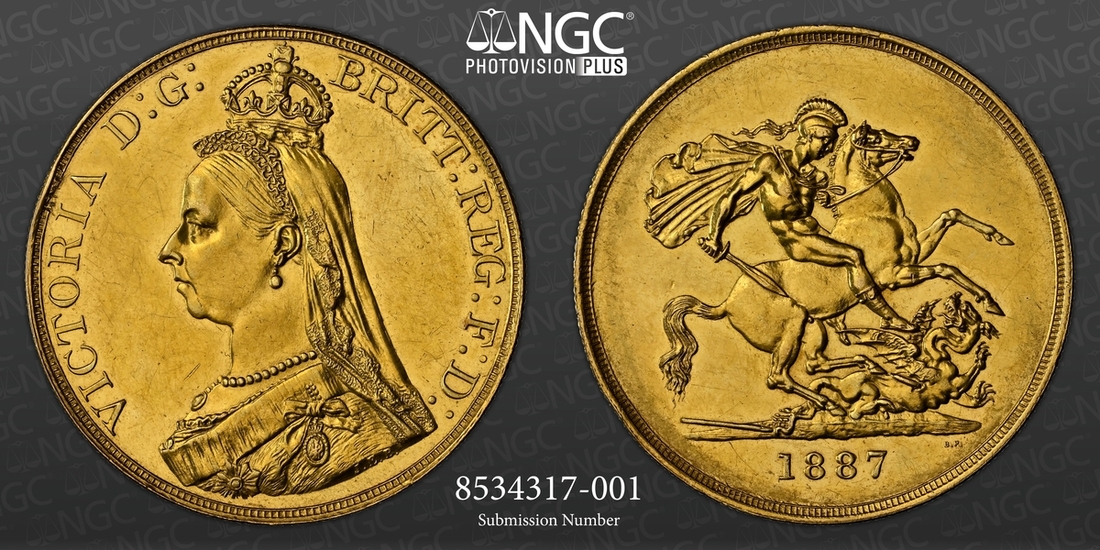 (g) NGC MS61-XF | Victoria (1837-1901), 'Golden Jubilee' Composite Currency Long Set, 1887 (11), Five-Pounds to Half-Sovereign, Crown to Threepence, the Five-Pounds with an edge bruise and the lesser Gold pieces more overtly circulated, otherwise the Silver colourfully toned, very fine or better all in NGC Black 'Pallas' holders (11)