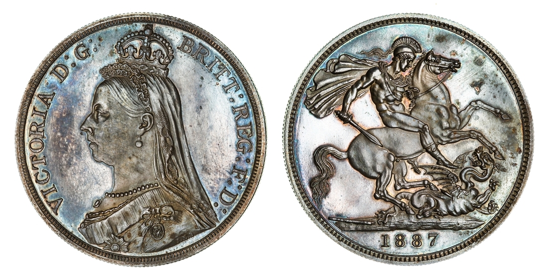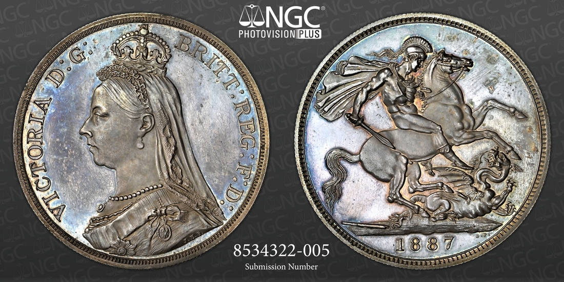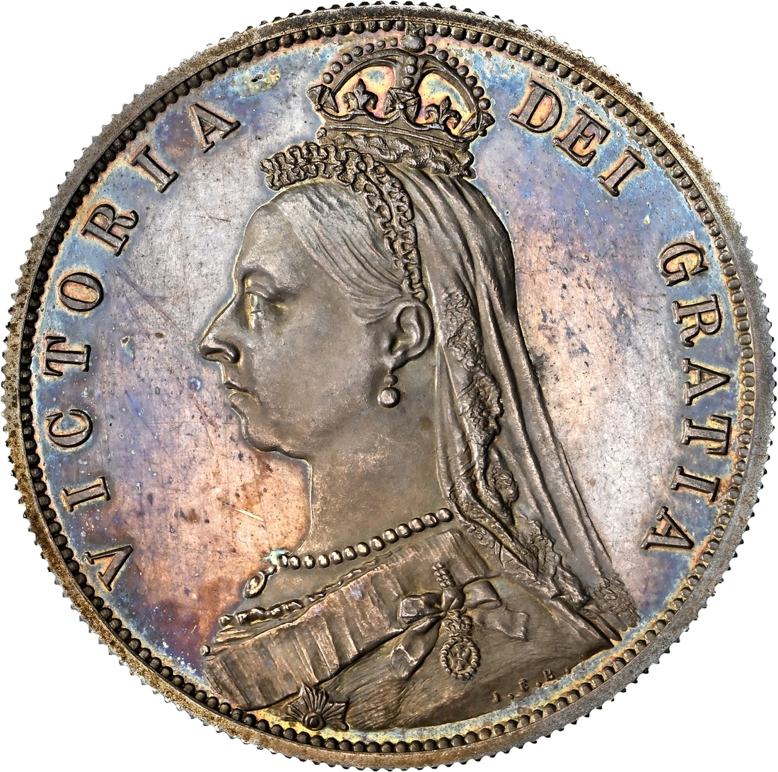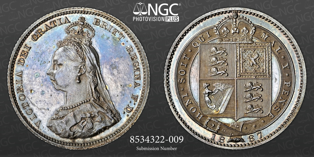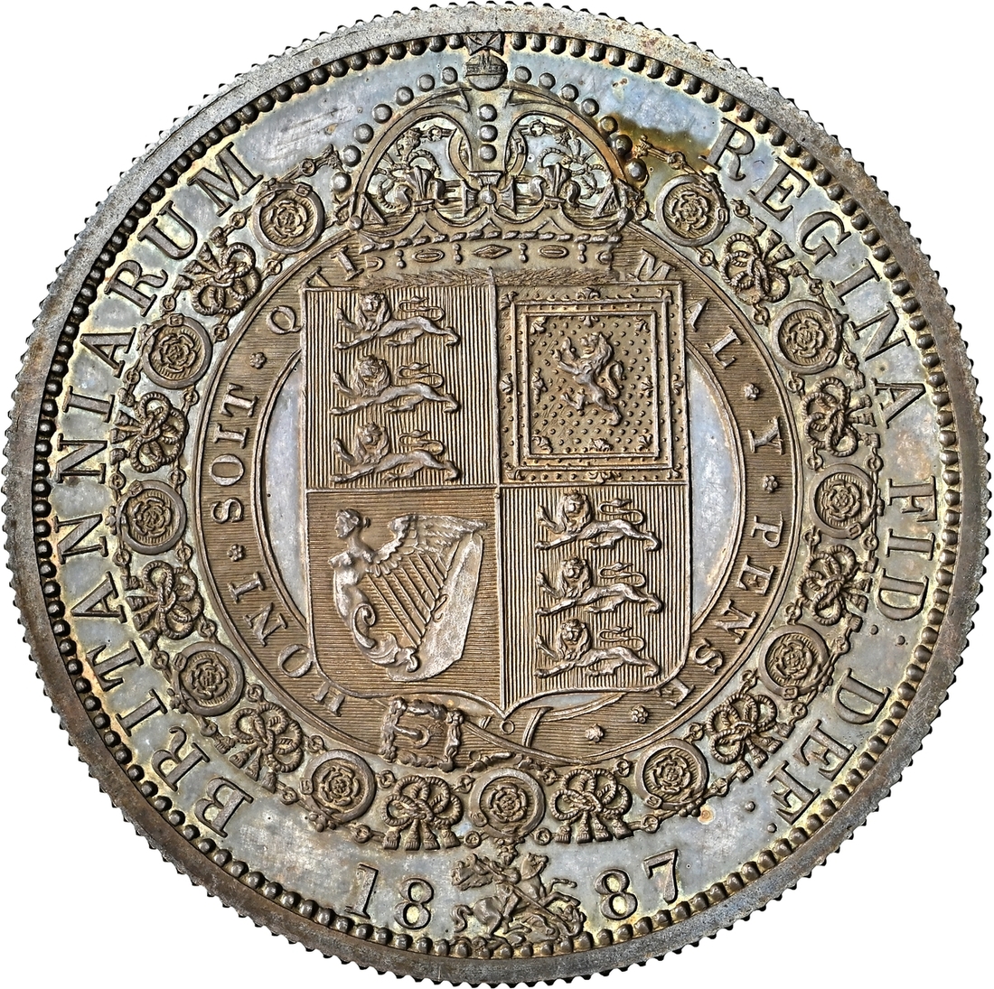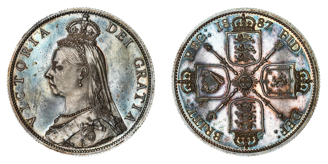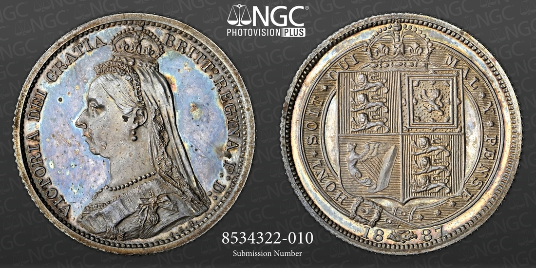 (x) NGC PF64-PF62 | Victoria (1837-1901), 'Golden Jubilee' Silver Proof Set, 1887 (7), Specimen Proof Crown to Threepence, (S.PS6), colourfully toned and arrestingly brilliant as issued, generally as struck with only the deftest of cabinet friction, all in NGC Black 'Pallas' holders (7)