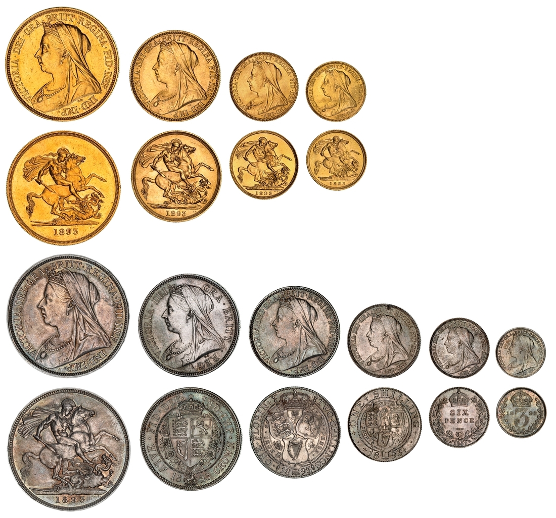 (g) NGC MS63+-UNC | Victoria (1837-1901), 'Old Head' Currency Set, 1893 (10), Five-Pounds to Half-Sovereign (4), Crown to Threepence (6), all in NGC Black 'Pallas' holders