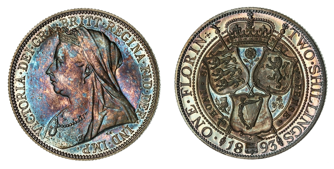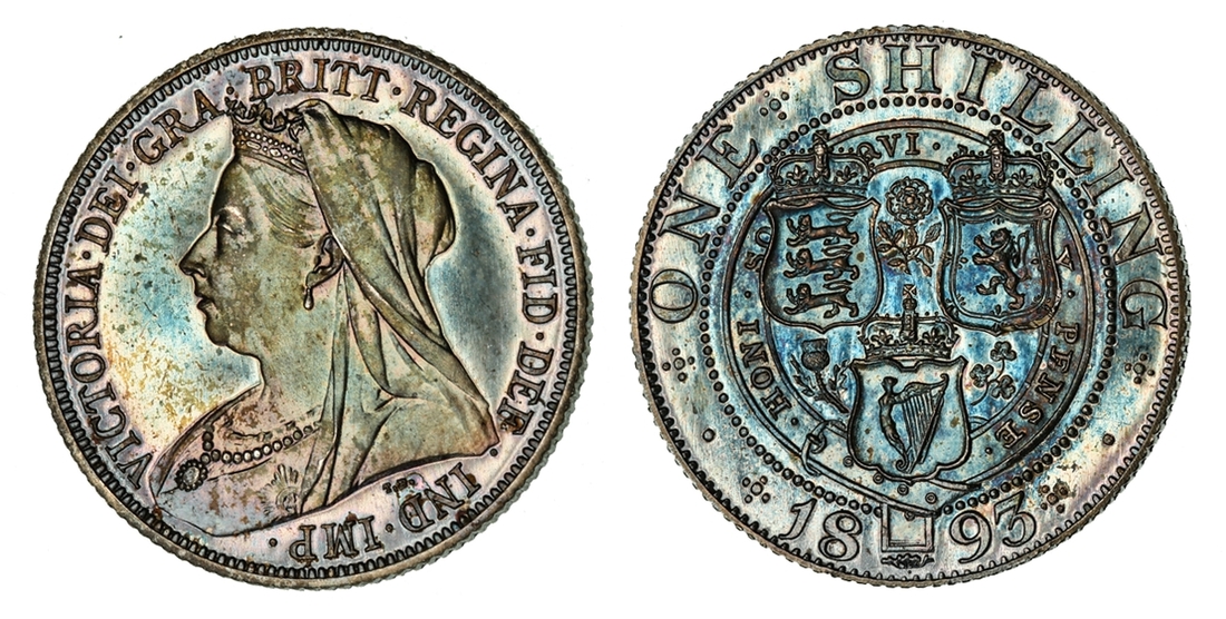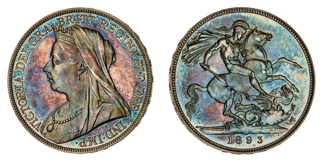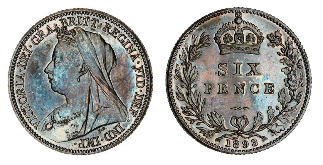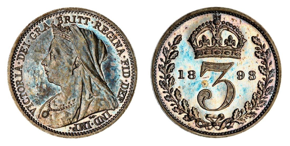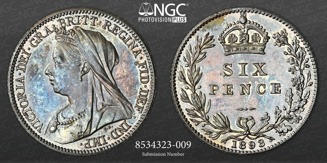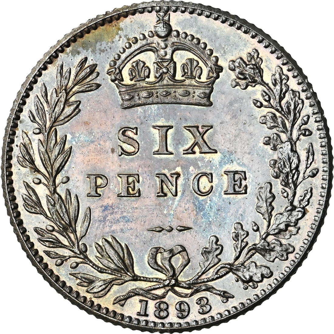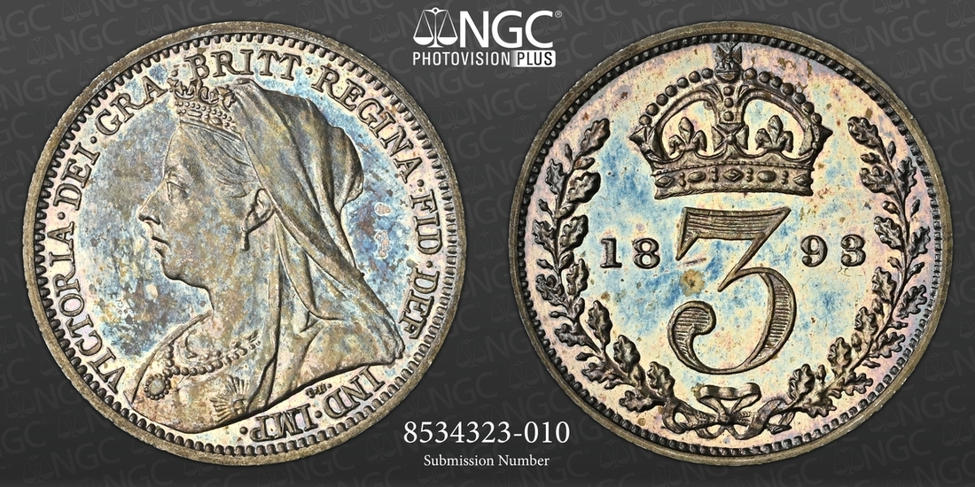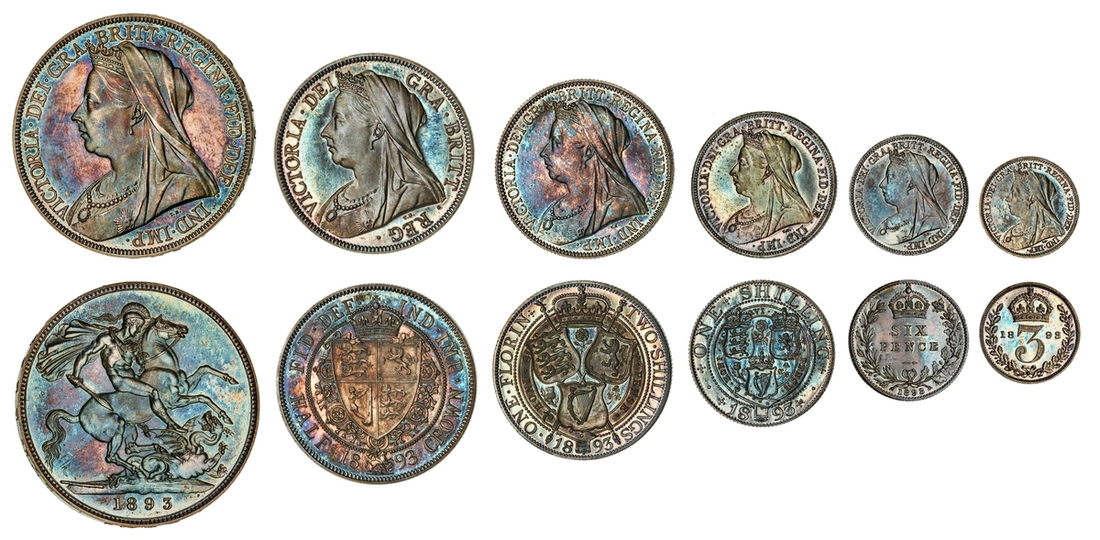 (x) NGC PF65 CAM - PF64 | Victoria (1837-1901), 'Old Head' Proof Silver Set, 1893 (6), Specimen Proof Crown to Threepence (S.PS8), sensationally and colourfully cabinet toned in hues of red-blue and ochre orange overlying brilliant mint fresh fields, a deeply attractive and highly original set, worthy of any 19th Century Connoisseur!, all in NGC Black 'Pallas' holders (6)