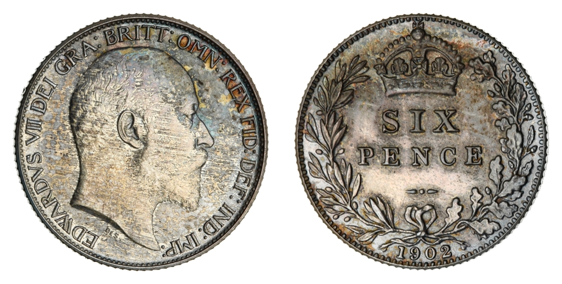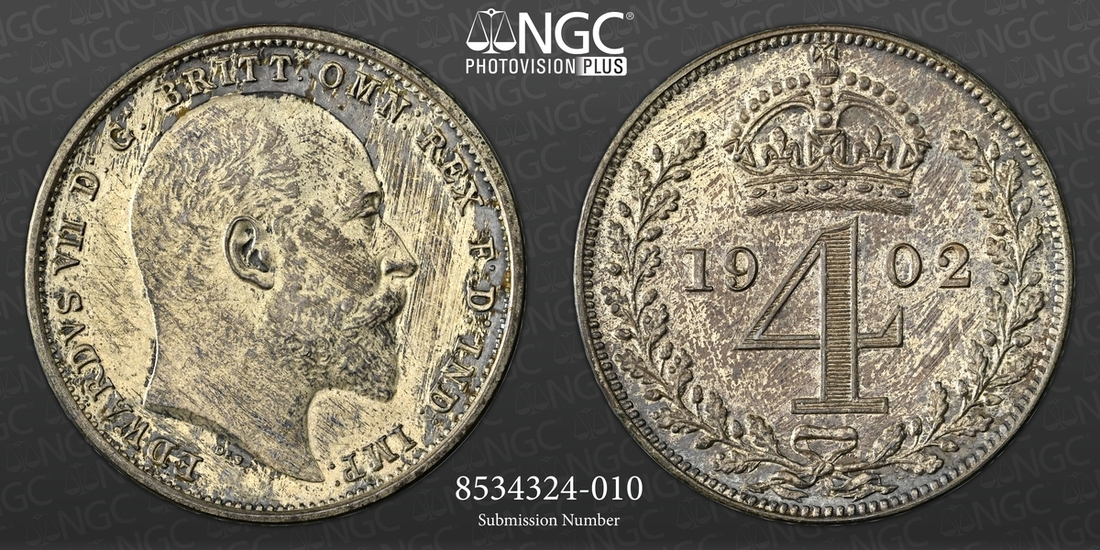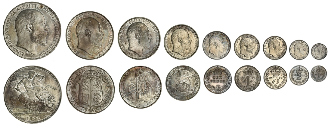 NGC PF64 - PF65 MATTE | Edward VII (1901-1910), Coronation 'Specimen' Matte Proof Silver Set, 1902 (9), Proof Crown to Sixpence, and Maundy Set (cf. S.PS10), rich darker cabinet tone with playful colourful highlights to peripheries, a superb and well-matched original set, much as struck, all in NGC Black 'Pallas' holders (9)