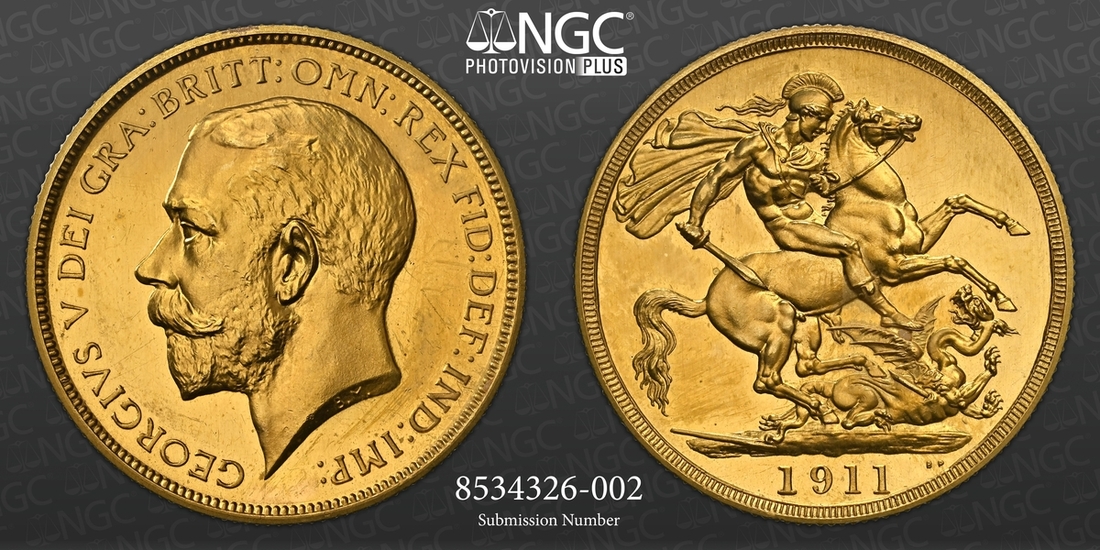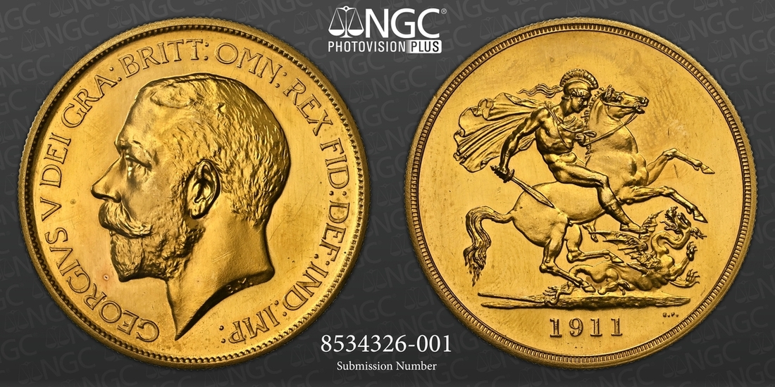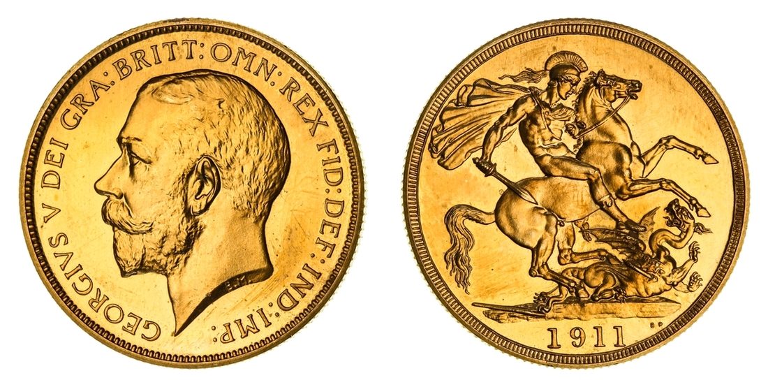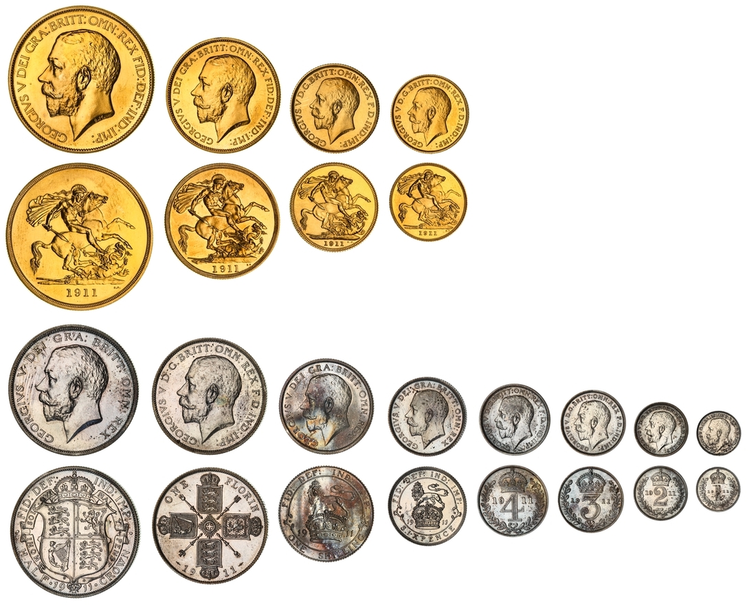 (g) NCG PF65-PF62 | George V (1910-1936), Coronation 'Specimen' Proof Set, 1911 (12), Proof Five-Pounds to Half-Sovereign; and Proof Halfcrown to Sixpence including Maundy Set (Stratos 284; S.PS11), all in NGC Black 'Pallas' holders (12)