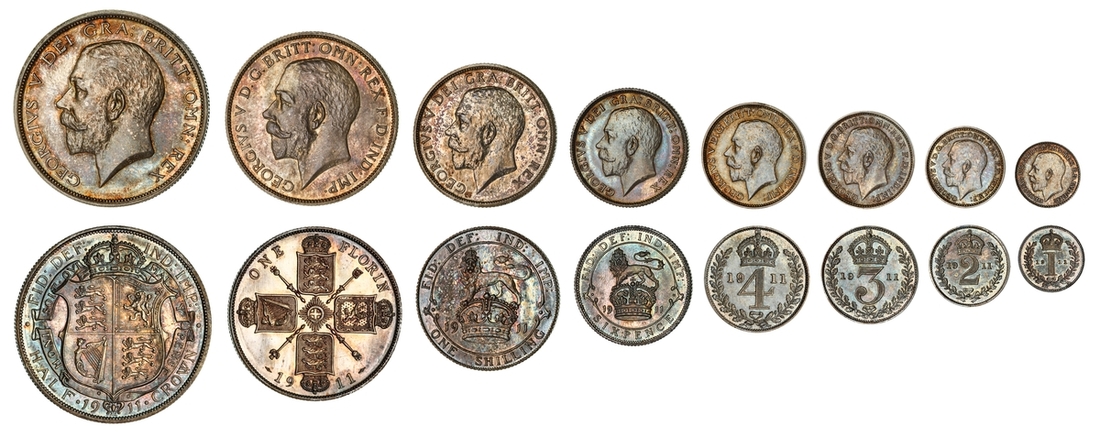 (x) NGC PF64-PF65 | George V (1910-1936), Coronation 'Specimen' Silver Proof Set, 1911 (8), Proof Halfcrown to Sixpence, and Maundy Set (S.PS13), toned and brilliant uncirculated or very near so, in NGC Black 'Pallas' holders (8)