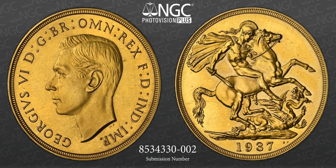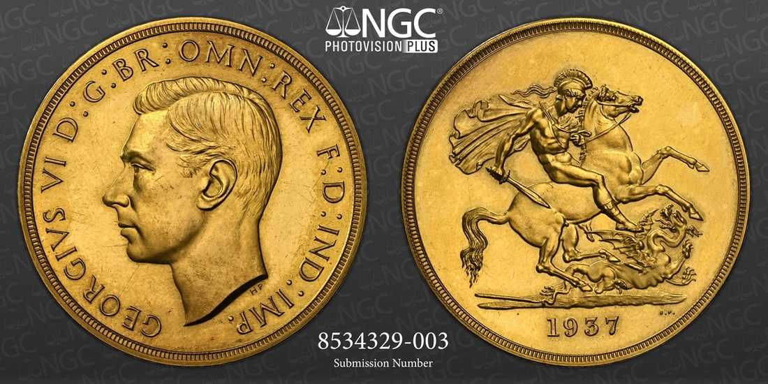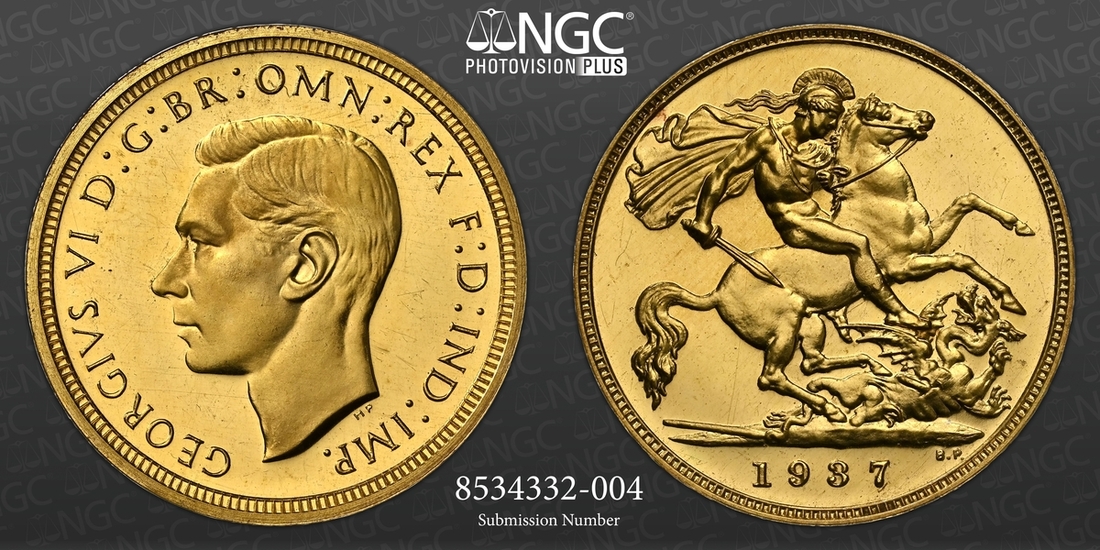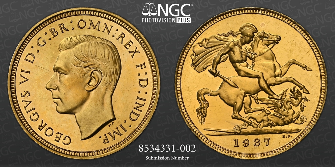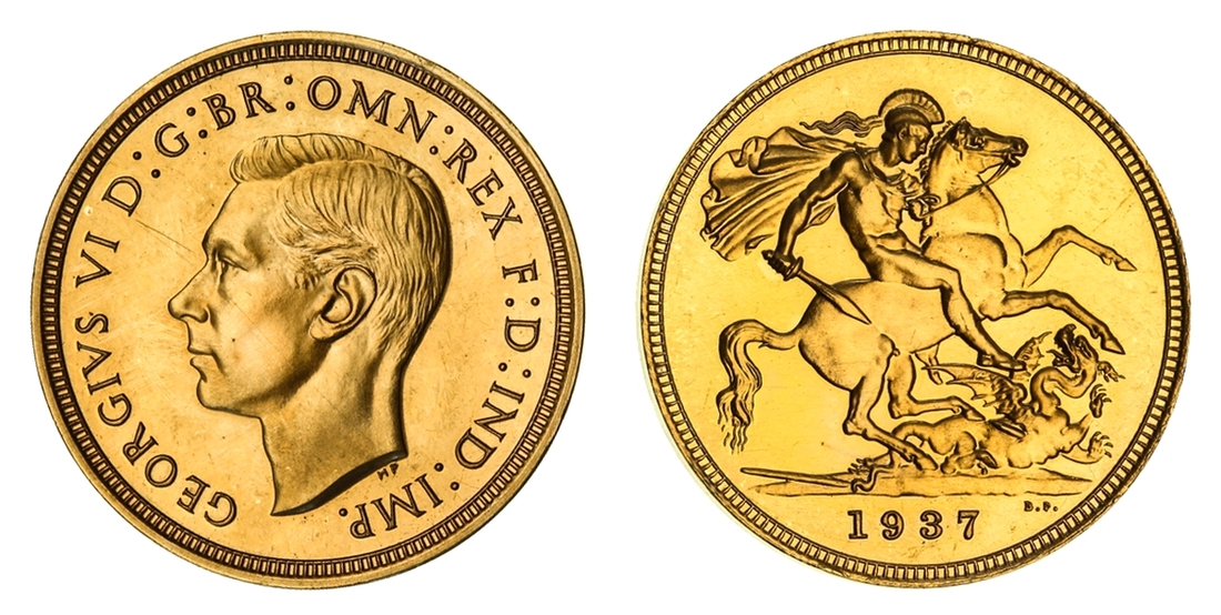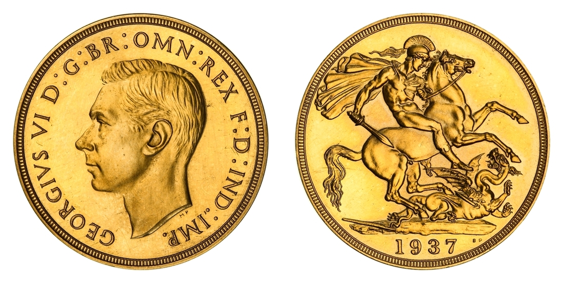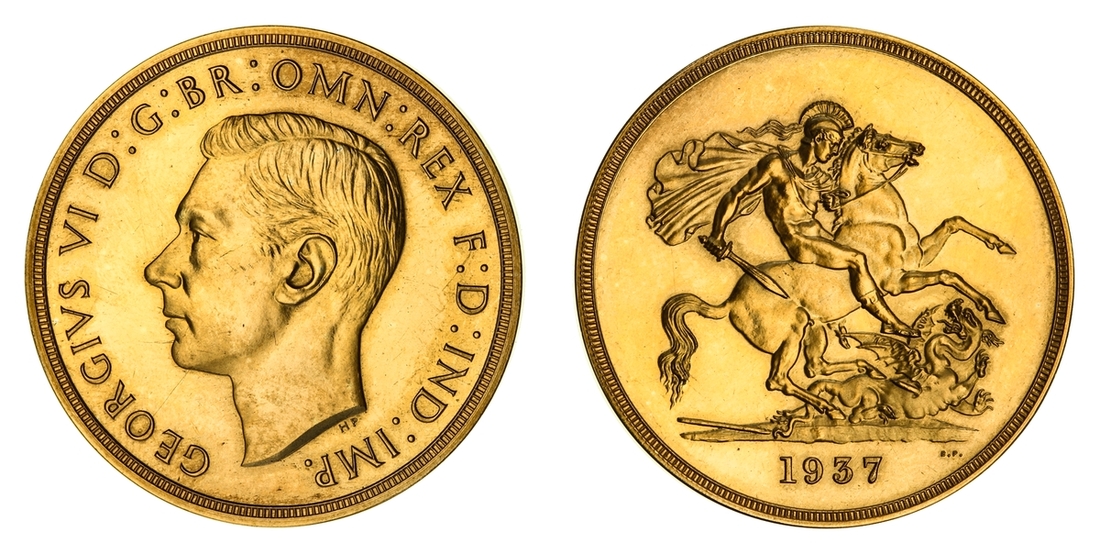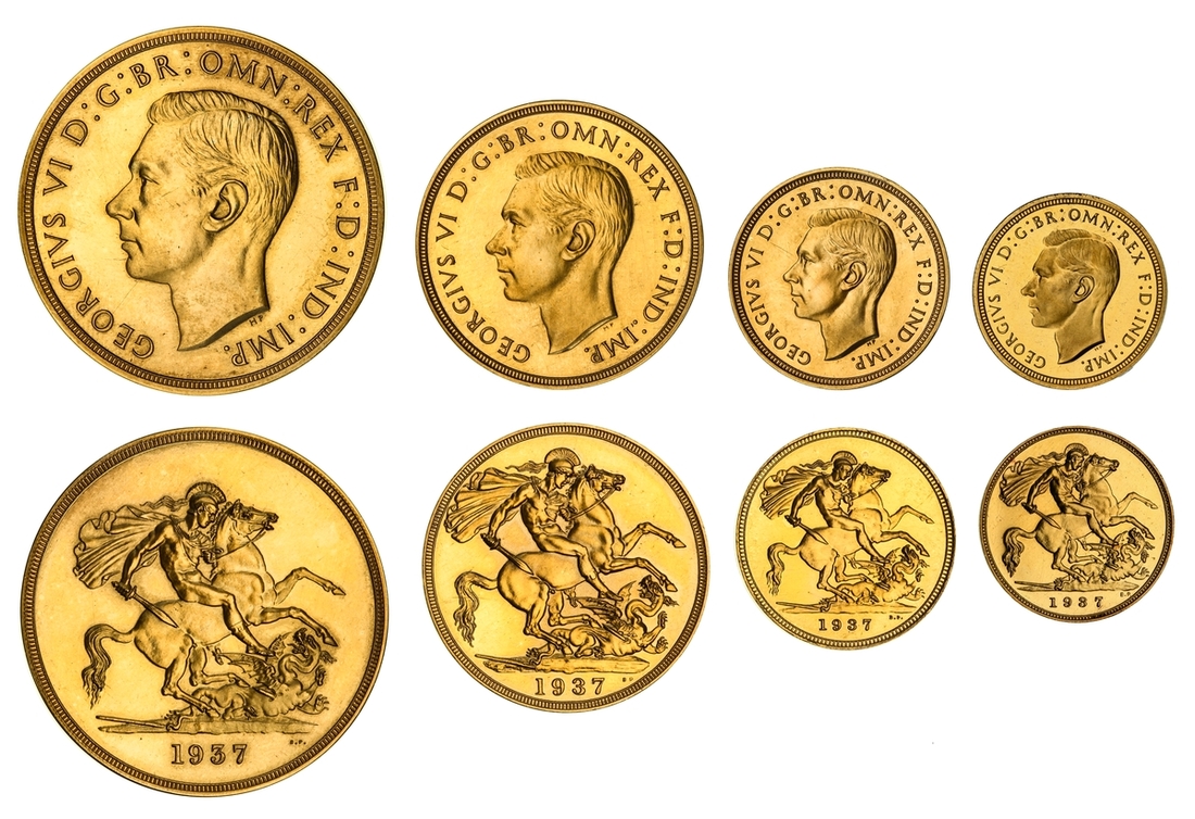 (g) NGC PF62-PF64 CAM | George VI (1936-1952), Coronation 'Specimen' Gold Proof Set, 1937 (4), Five-Pounds to Half-Sovereign, bare head left, rev. St George and Dragon, edges plain, 12h (W&R 435, 437, 439, 442; S.4074-4077 [S.PS15]), faint cabinet friction in otherwise brilliant fields, good extremely fine or better, the Half-Sovereign with playful Cameo definition and much as struck thus, all in NGC Black 'Pallas' holders