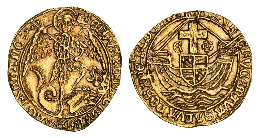 ~ Exhibited at the Anniversary Meeting of the British Numismatic Society: "Mr Parsons showed an Angel of Edward V, i.m. obv. Boar's Head, rev. Sun-and-Rose, the third known and finest specimen", 29 November 1946 ~