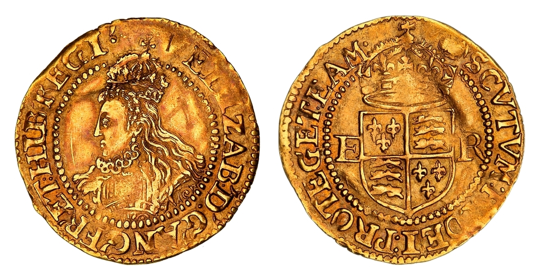 "A Small and Unusual Collection of Gold Coins of Rulers Named Elizabeth", Glendining, 27 May 1987, lot 340* - "creased, some flatness, but an attractive portrait, a little smooth below ruff and otherwise about very fine" - £900
