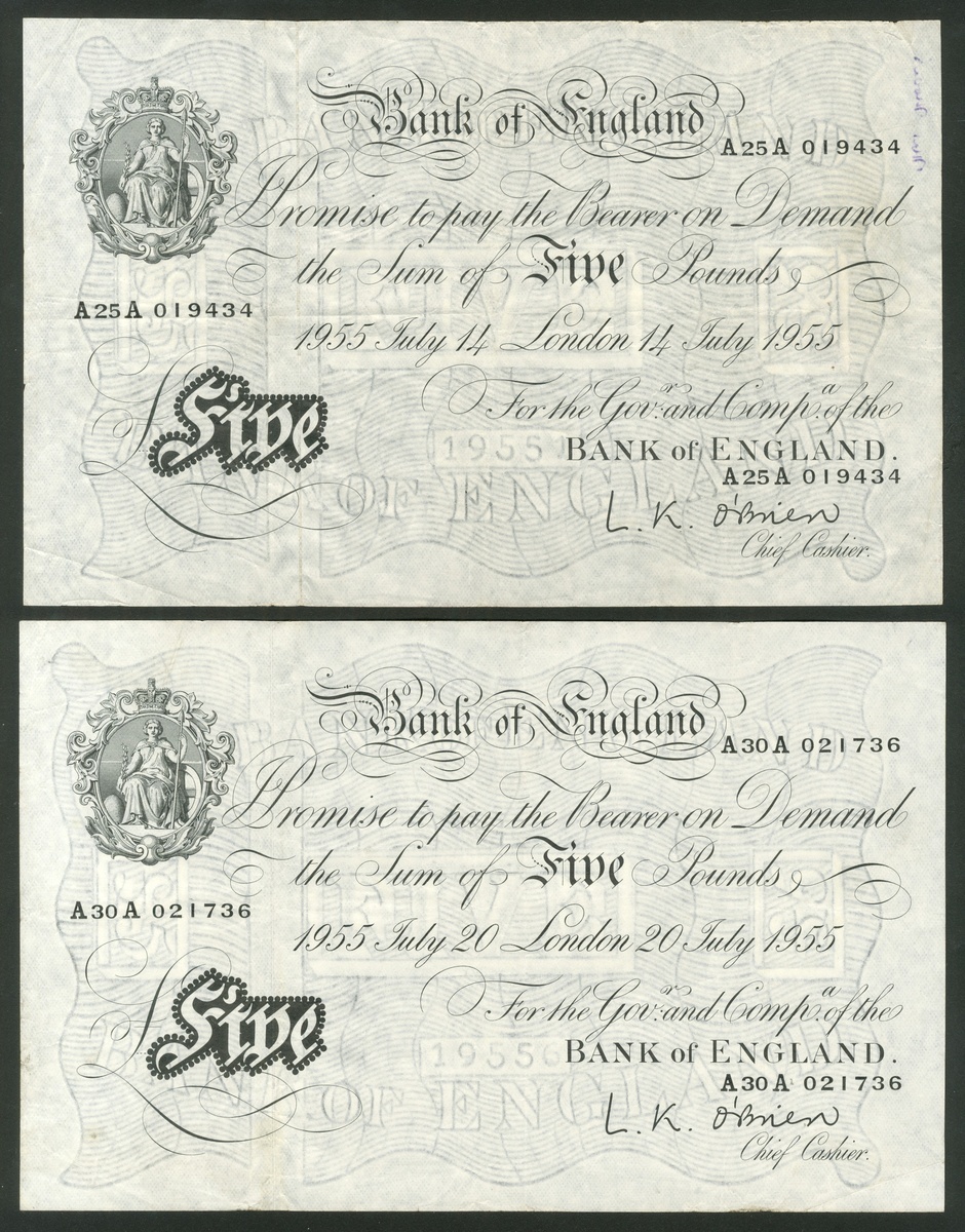 Bank of England, L. K. O'Brien, [4 notes] £5, London, 1955-6,