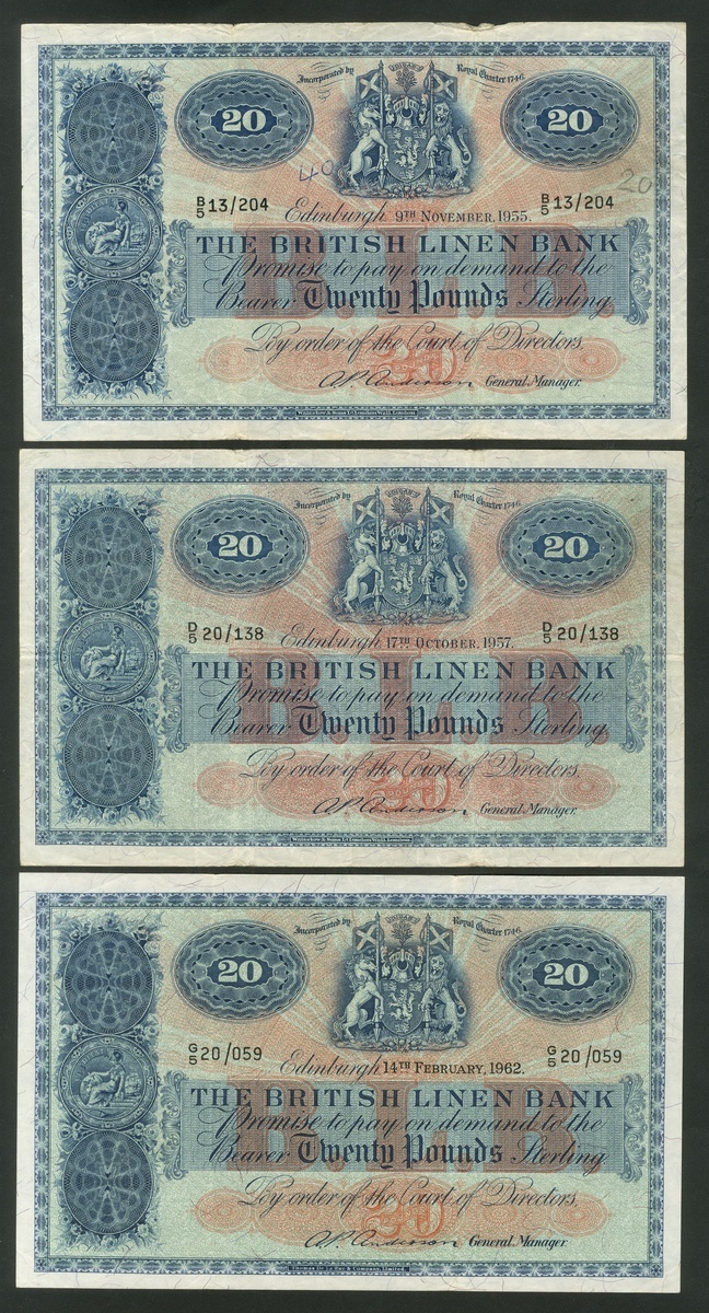(x) British Linen Bank, [5 notes] £20, Edinburgh, 1939-1962,