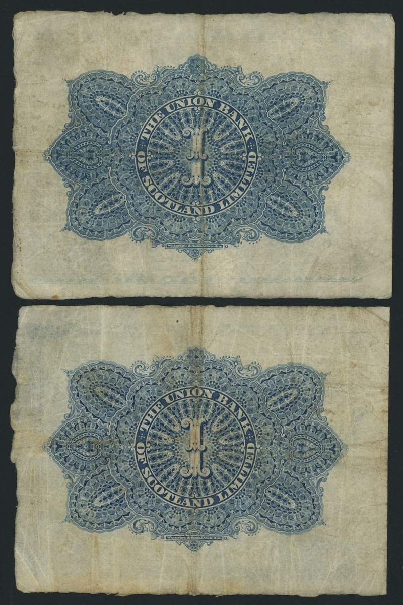 (x) Union Bank of Scotland Limited, [2 notes] £1, 1915-18, £1, 8th November 1915, serial number E 331/514 roman prefix,