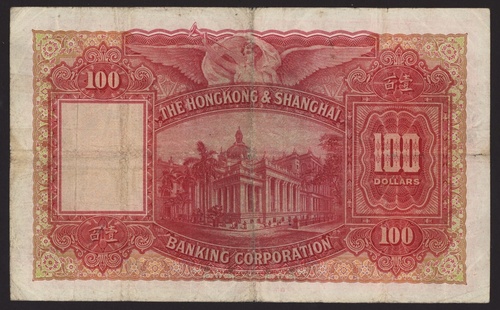 The Hong Kong & Shanghai Banking Corporation, $100, 31st March 1947, serial number D572,378, (Pick 176e, BNB 660), good fine