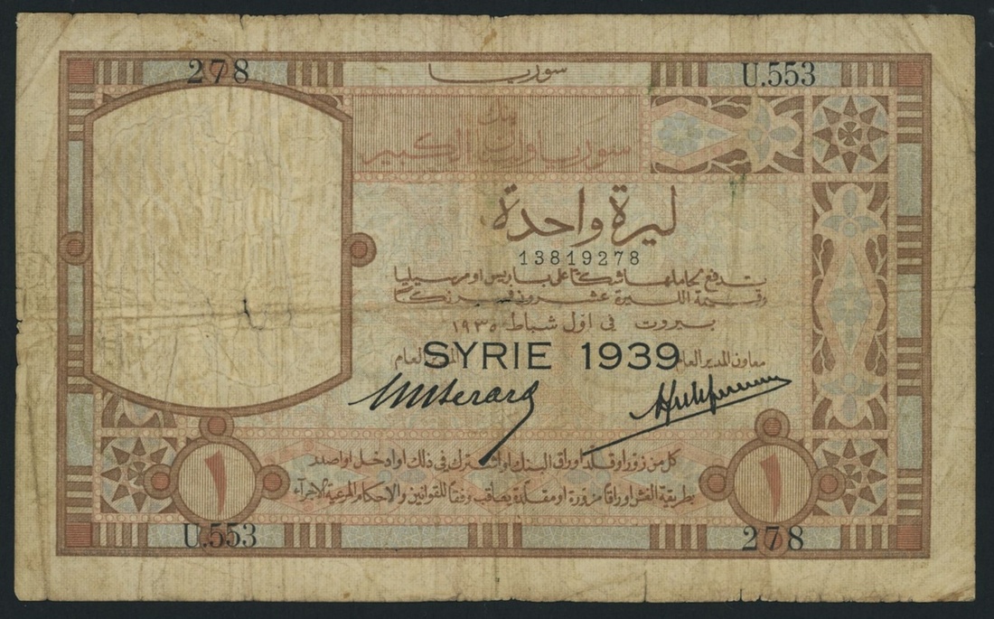 (x) Banque de Syrie et du Grade-Liban, Syria, 1 Livre, 1935, serial number U.553 278, (Pick 34, BNB 203), very good, centre hole and multiple tears