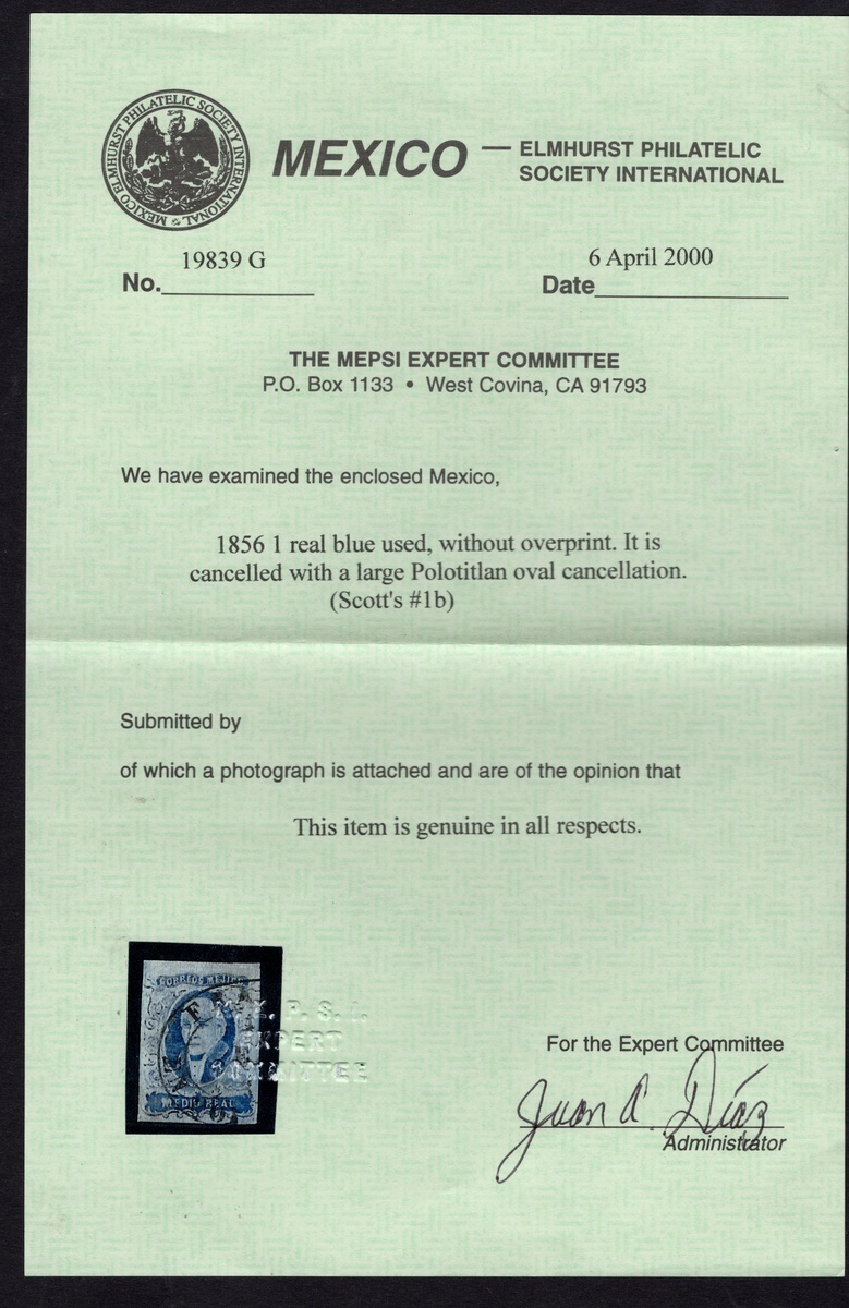 Polotitlán ½r. Blue without overprint, margins all around, most likely from the direct shipment. Only 189 issued. 2000 MEPSI certificate. Scott 1b; NF $1,250.
