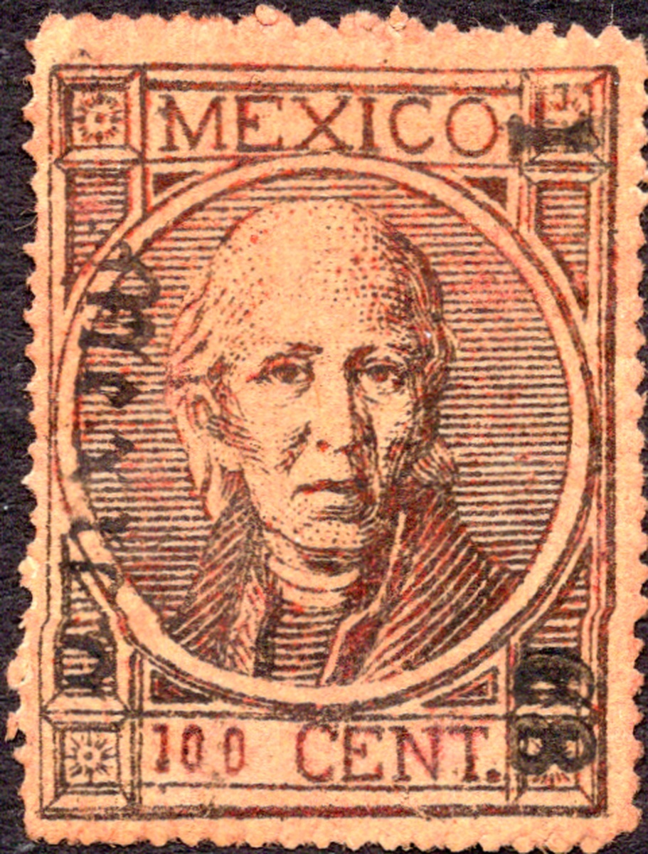 Mexico District 100c. Brown on Brown Thin Figures (#1-68), perforate and mint n.h., well centered. 1995 APS certificate. Scott 57, $1,000.