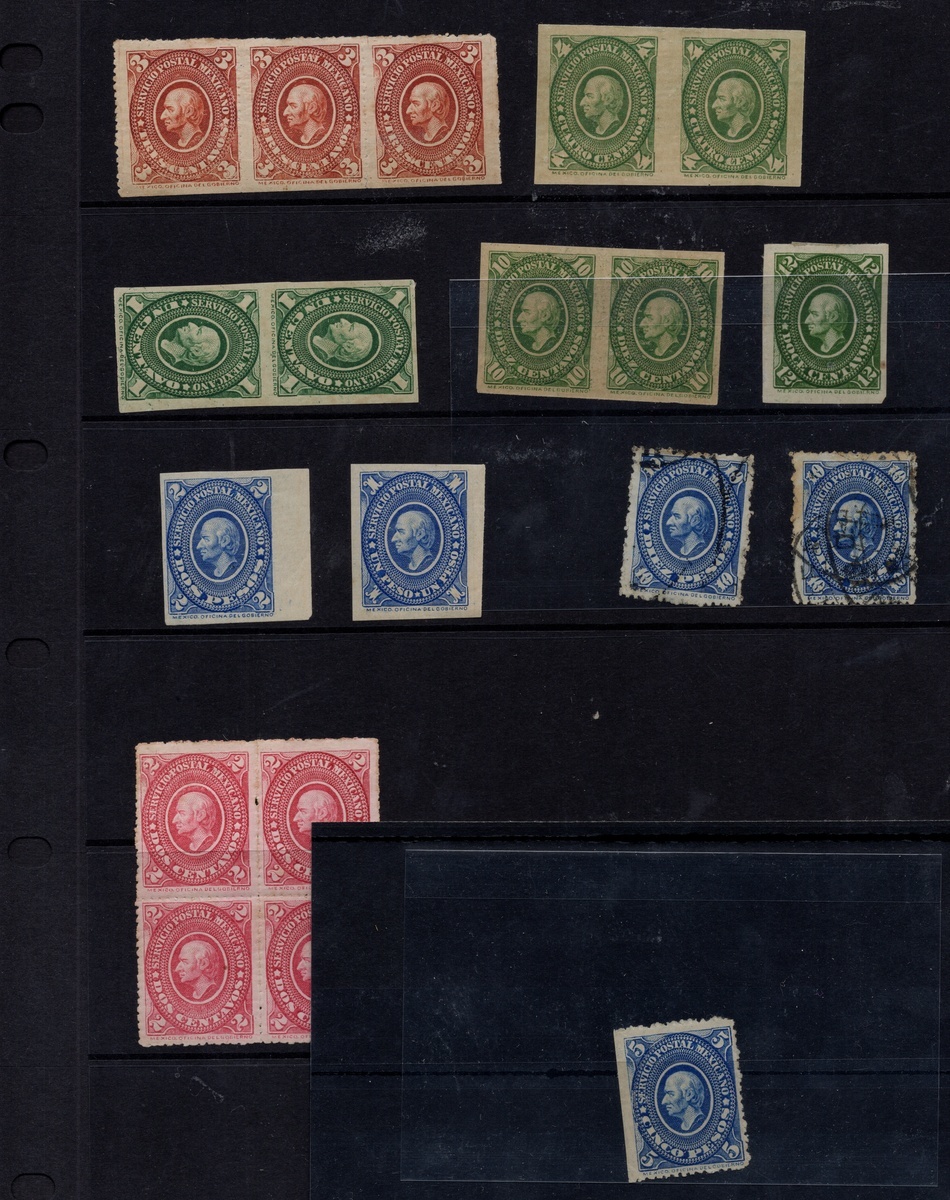 1884 Assembly of 19 stamps, used and unused, including several imperforate varieties such as 1c., 4c. and 10c. green pairs, and singles of 12c., 1p. and 2p. Also present are an attractive unused 2c. block of four and 3c. strip of three, an unused 5p. blue with o.g. and natural straight edge, and two 10p. used. Scott 150a, 153a, 156a, 161a, 162a, 163, 164, 168, $1,586., ,