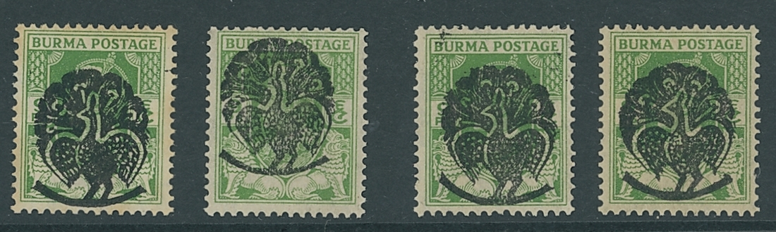 9p. yellow-green (4) comprising Types A, B, C and D, fine mint. S.G. J4, £720