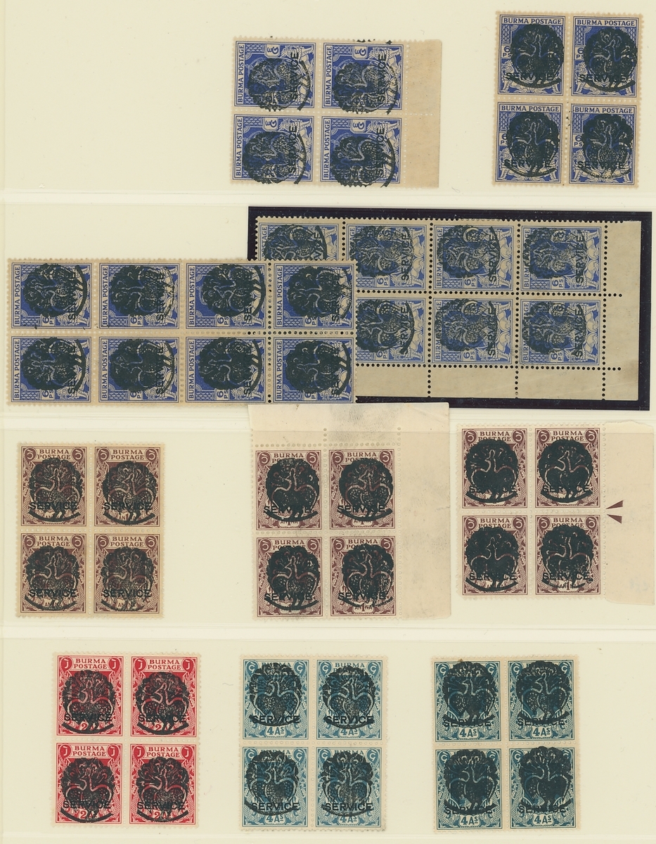 6p. blocks of eight (2, both 2x4 and a little toned), six (2x3) and four (2), 1a. litho block of four (vertical crease), 1a. typo blocks of four (2, one with a blunt corner), 2a. block of four and 4a. block of four (2); generally fine mint. S.G. J8-J9aa, J10-J11, £1,850+