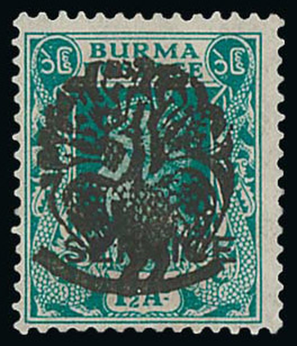 1½a. turquoise-green, unused with large part original gum, fresh and fine. Rare, the most difficult Myaungmya overprint. Brandon Certificate (2005). S.G. 9a, £950. Photo