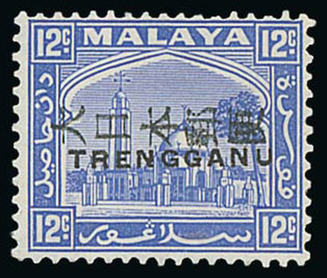 Selangor 12c. bright blue (both), fine mint. ISC TT15, $1,800; S.G. TT15-TT16, £800. Photo